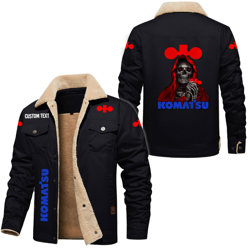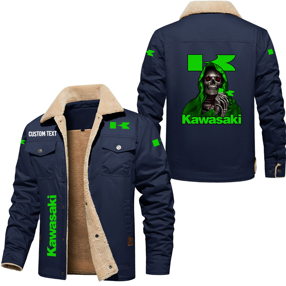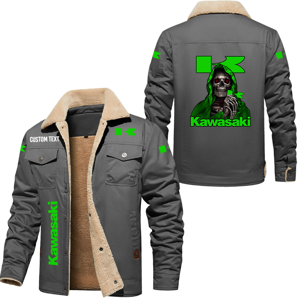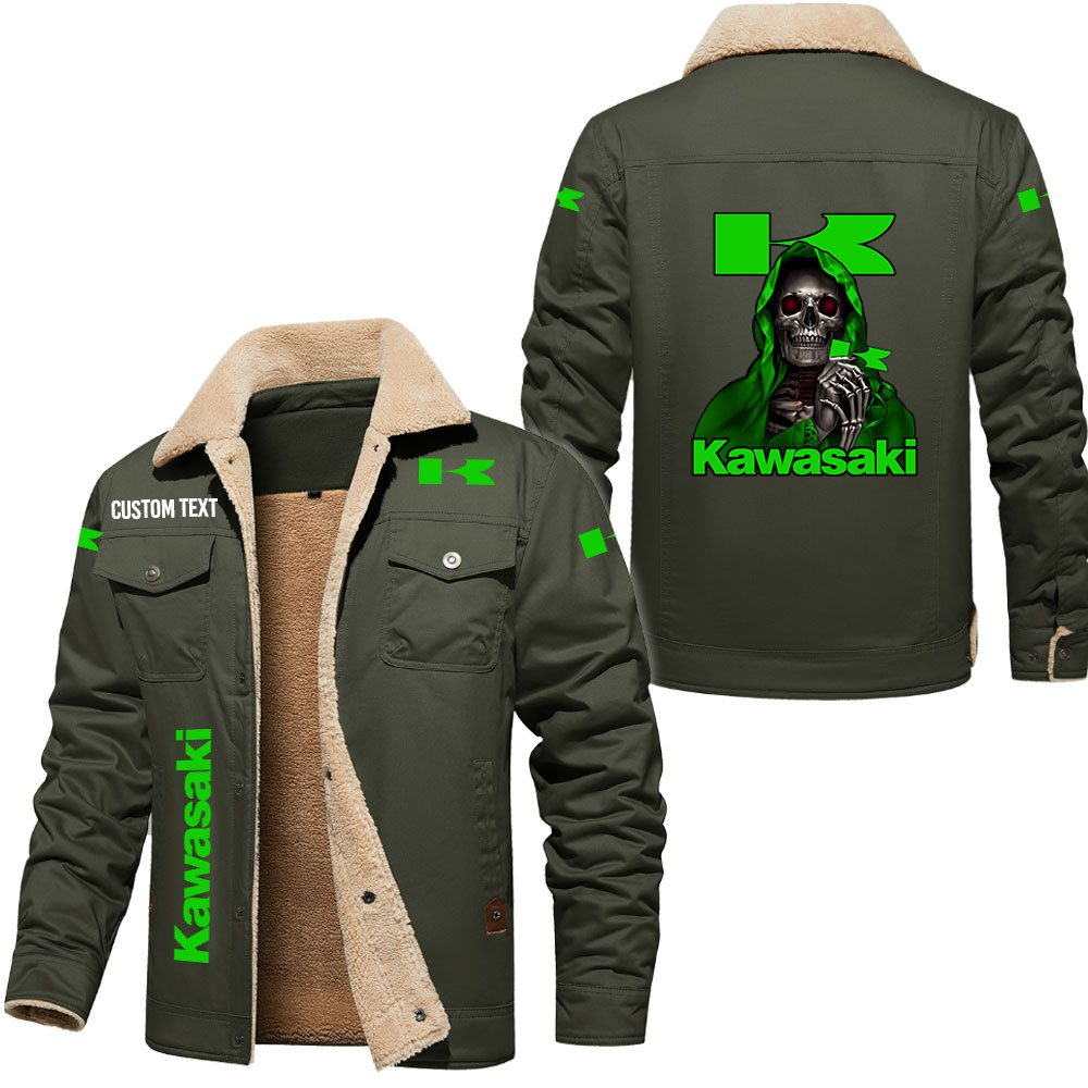 Kawasaki Skull Art Print Custom Name Cargo Fleece Lined Cotton Jacket