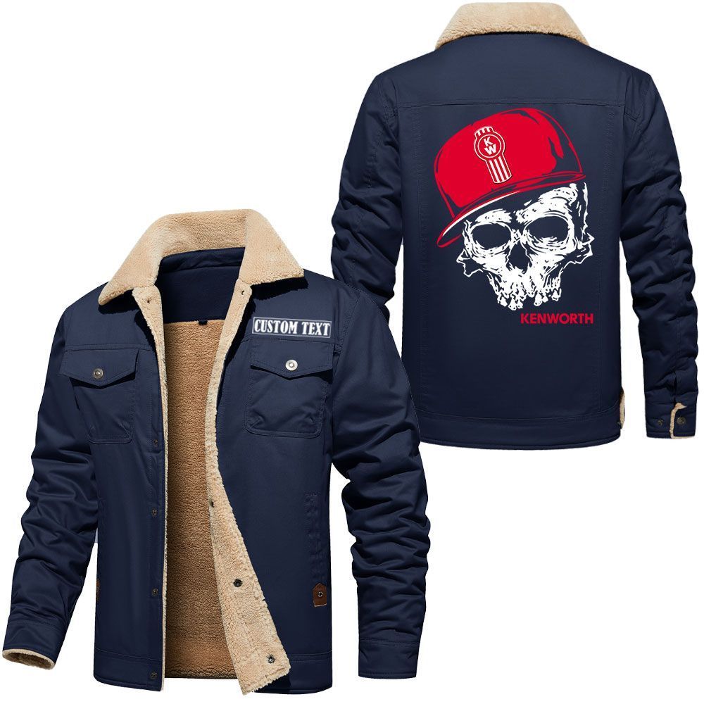 Kenworth Logo Custom Name Cargo Fleece Lined Cotton Jacket Personalized Outerwear with Skull Design