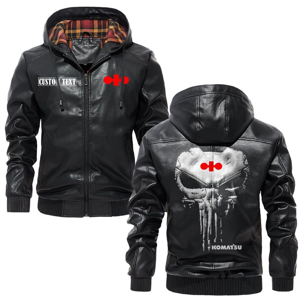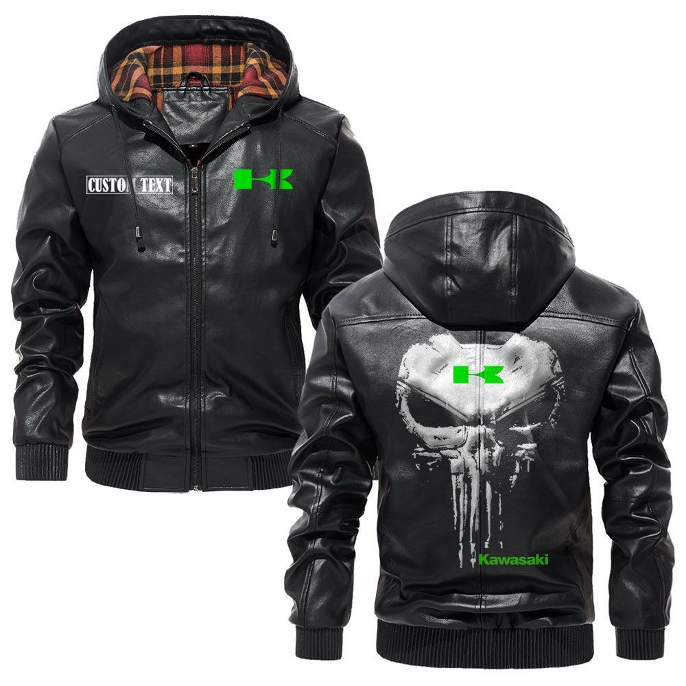 Kenworth Logo Custom Name Leather Hoodie Jacket Warm Outerwear with Punisher Skull Design