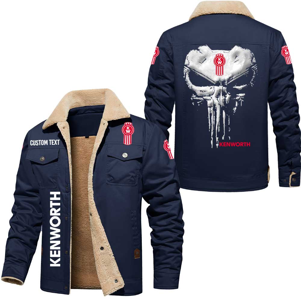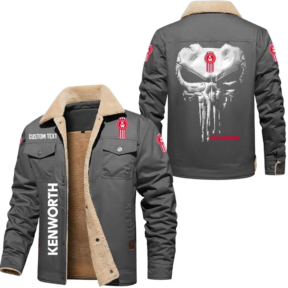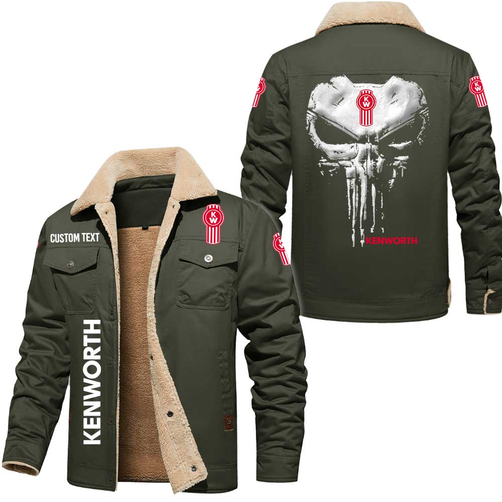 Kenworth Logo Skull Design Custom Text Cargo Fleece Lined Cotton Jacket