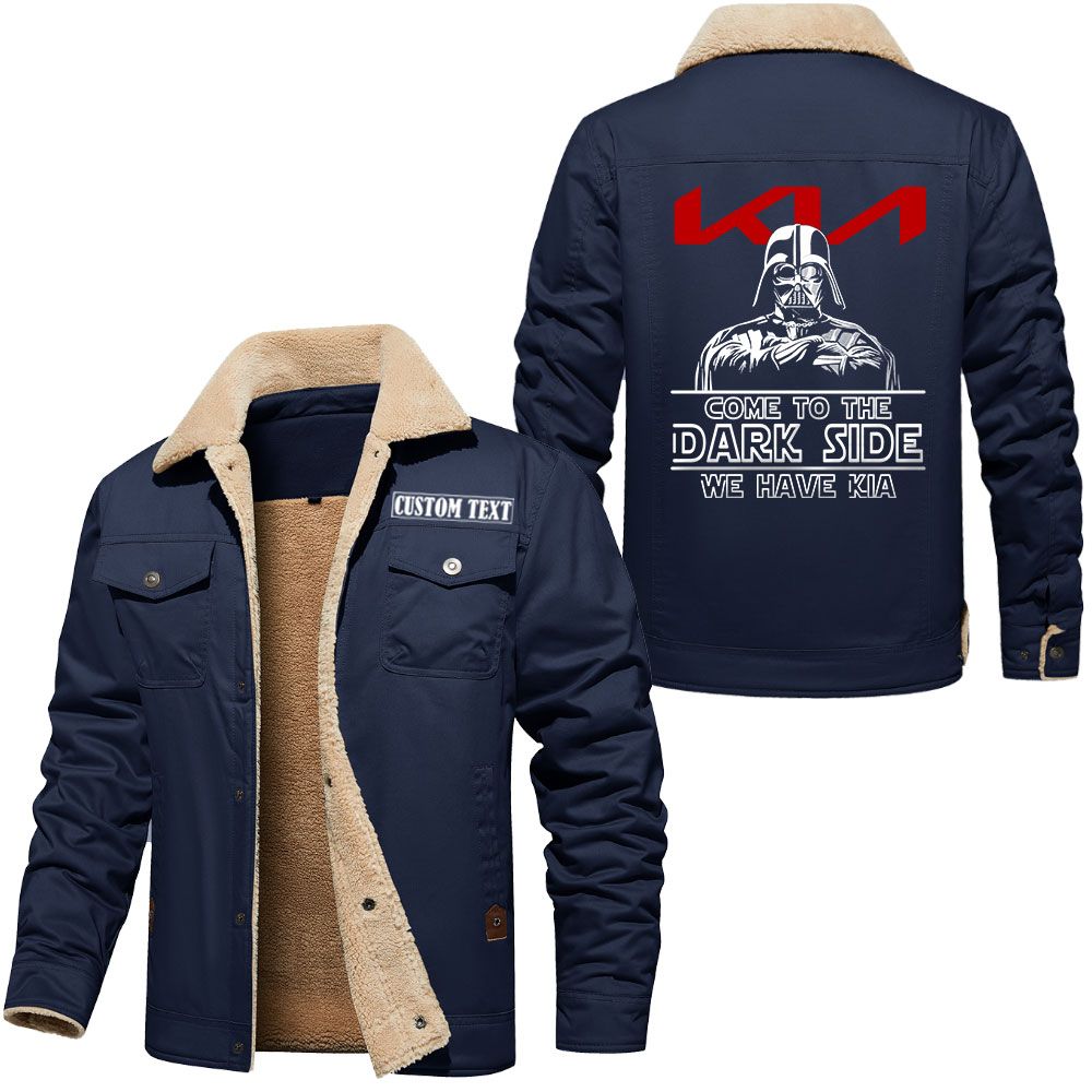 Kia Logo Custom Name Cargo Fleece Lined Cotton Jacket Personalized Outerwear with Dark Side Star Wars Design