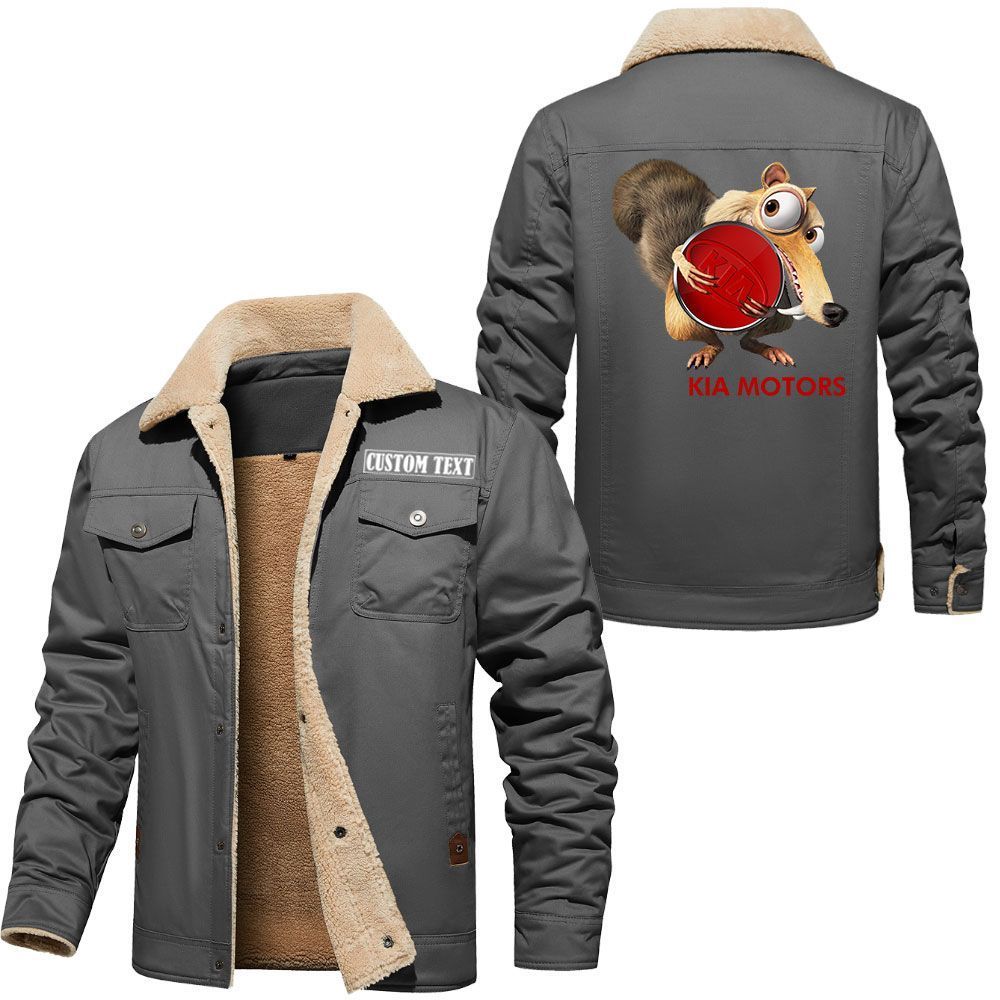 Kia Logo Custom Name Cargo Fleece Lined Cotton Jacket Scrat Ice Age Design Personalized Outerwear