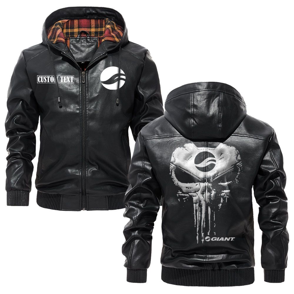 Kia Logo Custom Name Leather Hoodie Jacket Warm Outerwear with Punisher Skull Design