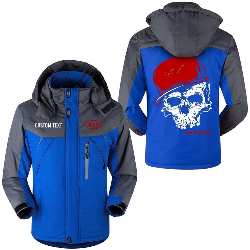 Kia Logo Custom Name Skull Design Hooded Windbreaker Ski Jacket