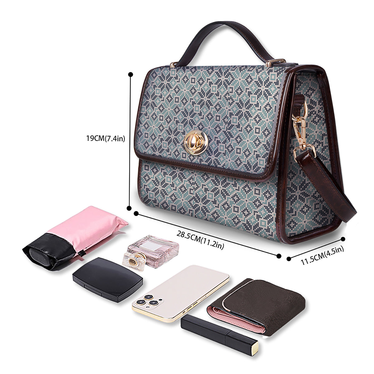 Size: 19 × 28.5 × 11.5 cm (7.4 × 11.2 × 4.5 in) — compact yet roomy enough for all your daily essentials.