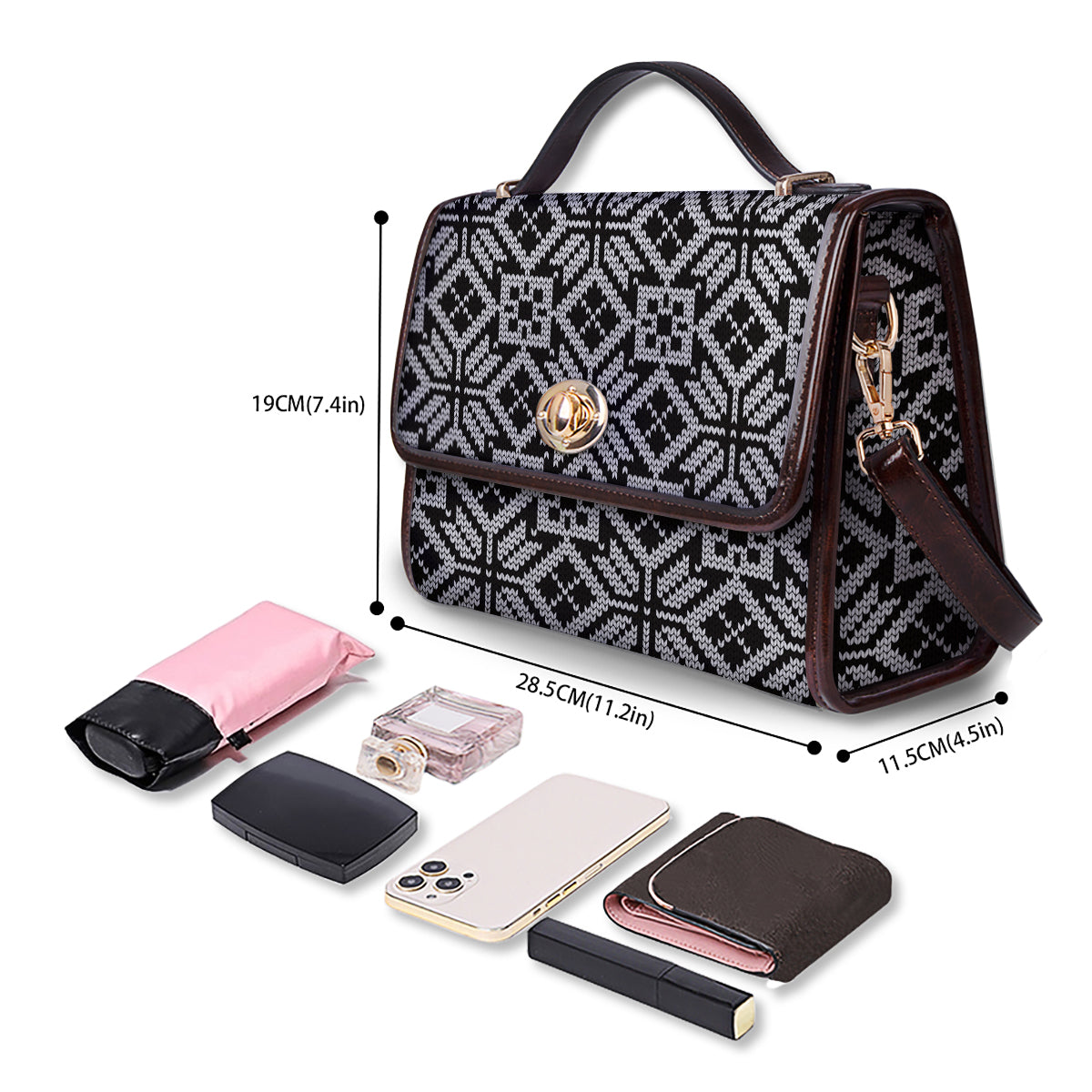Knitted White And Black Print Pattern Women’s Satchel Bag