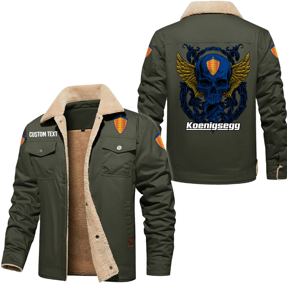 Koenigsegg Custom Name Skull Design Cargo Fleece Lined Cotton Jacket