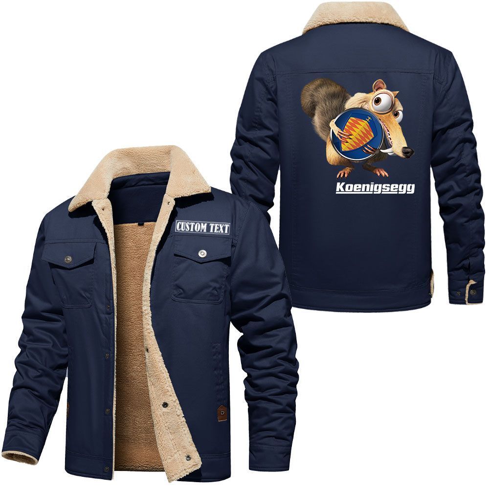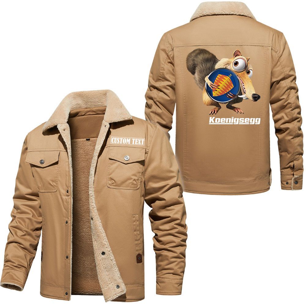 Koenigsegg Logo Custom Name Cargo Fleece Lined Cotton Jacket Scrat Ice Age Design Personalized Outerwear