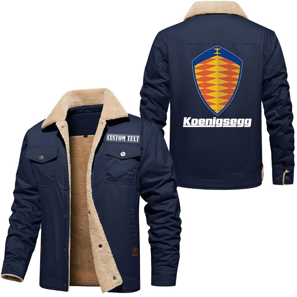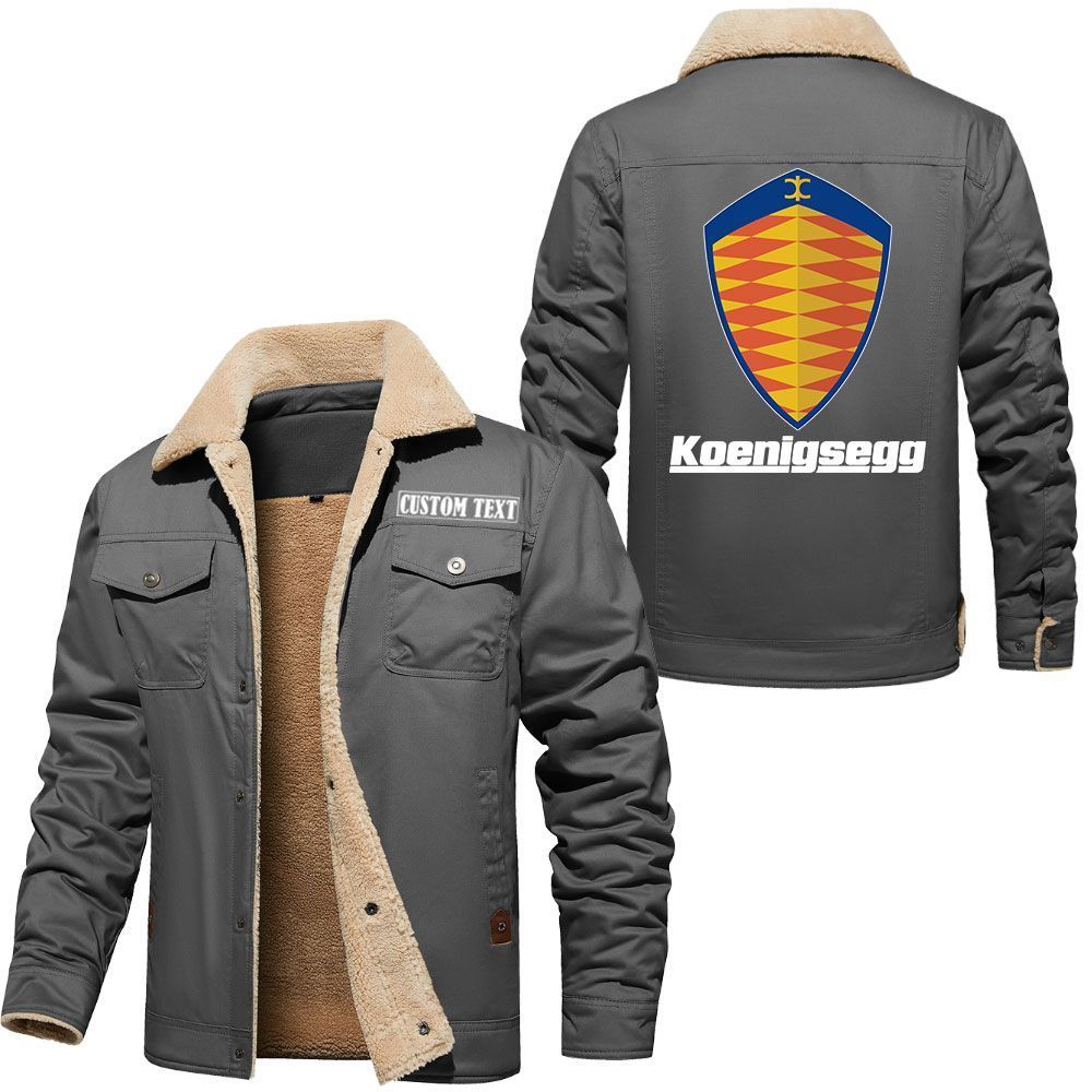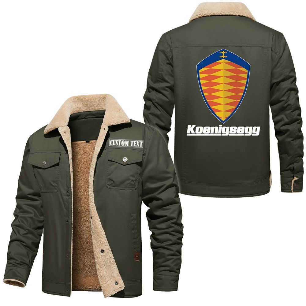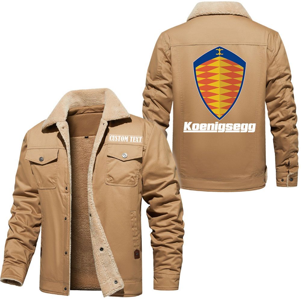Koenigsegg Logo Custom Name Cargo Fleece Lined Cotton Jacket Stylish Warm Personalized Outerwear