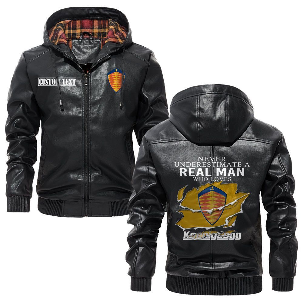 Koenigsegg Logo Custom Name Leather Hoodie Jacket A Real Man Who Loves