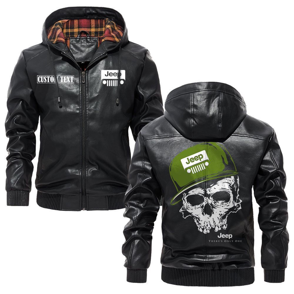 Koenigsegg Logo Custom Name Leather Hoodie Jacket Warm Outerwear with Skull Design