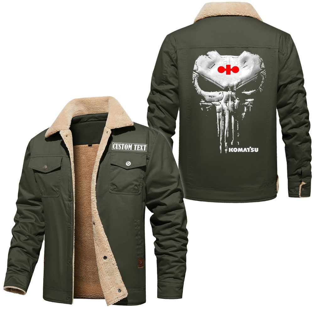 Komatsu Logo Custom Name Cargo Fleece Lined Cotton Jacket Personalized Outerwear with Punisher Skull Design