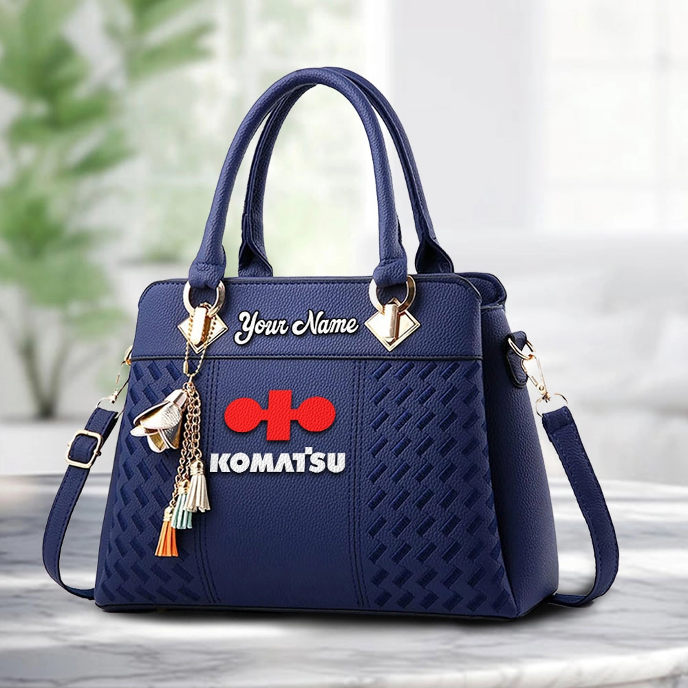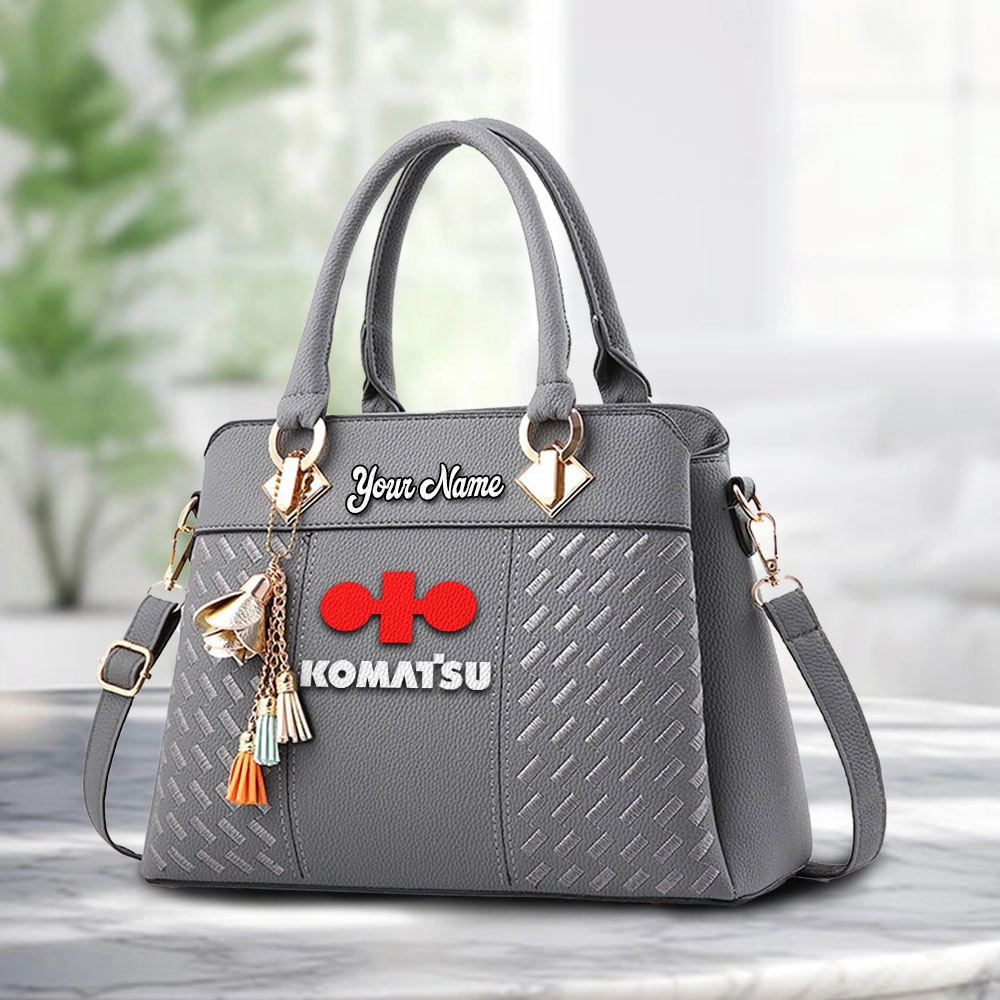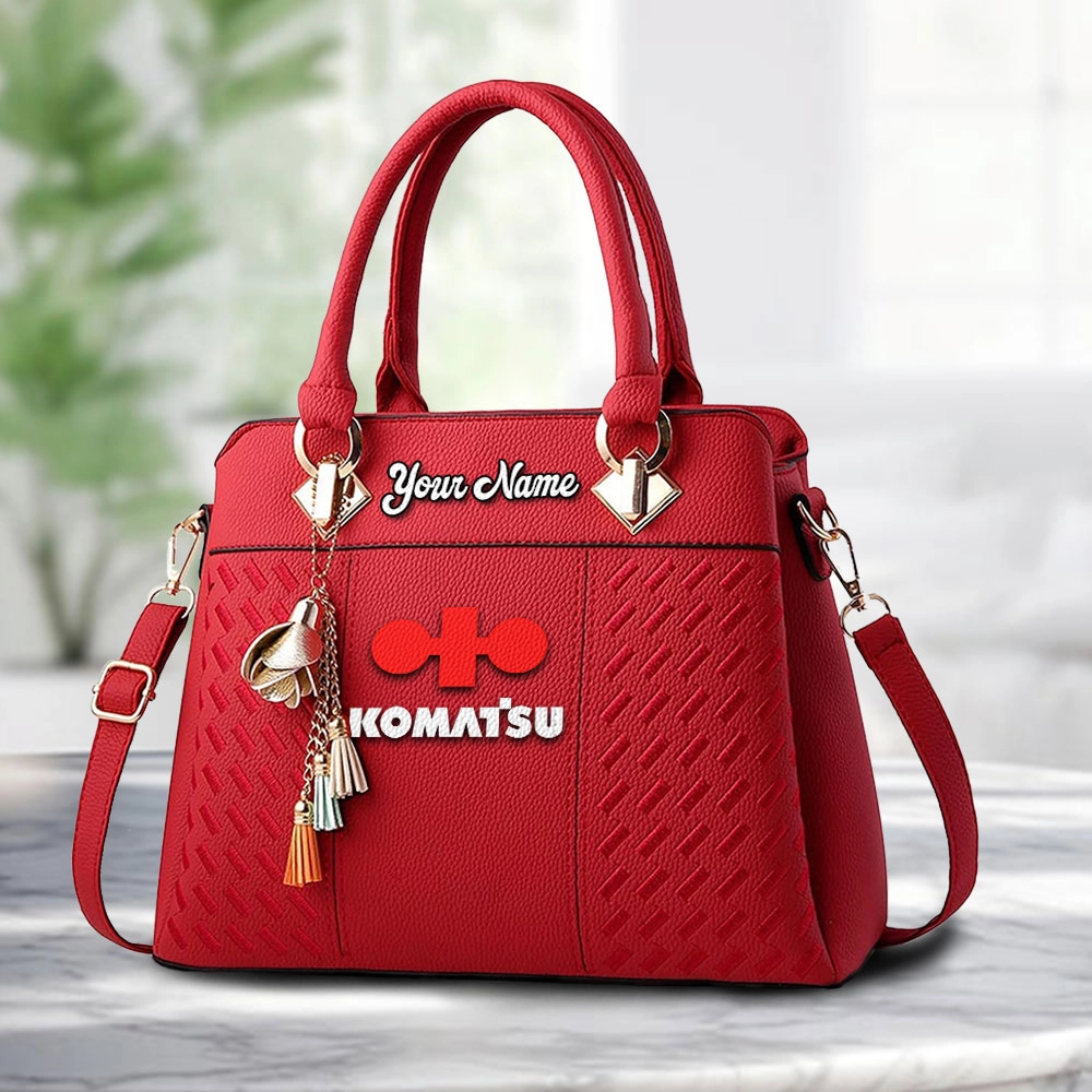 Komatsu Logo Personalized PU Leather Handbag Custom Name For Women