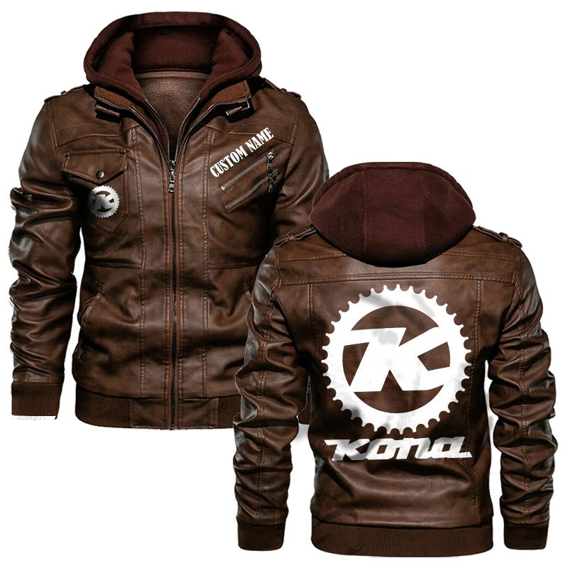 Kona Bicycle Company Hooded Leather Jacket For Men Women