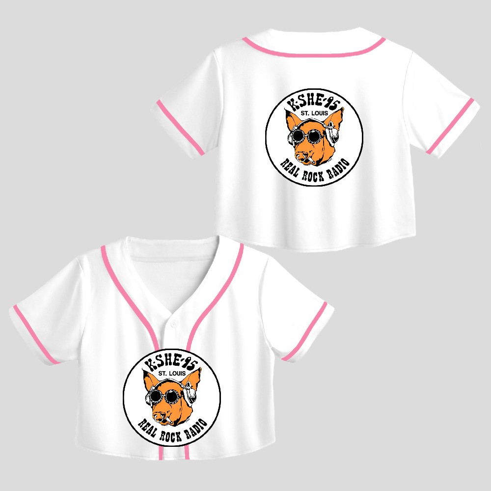 Kshe 95 Real Rock Radio Station Crop Top Baseball Jersey