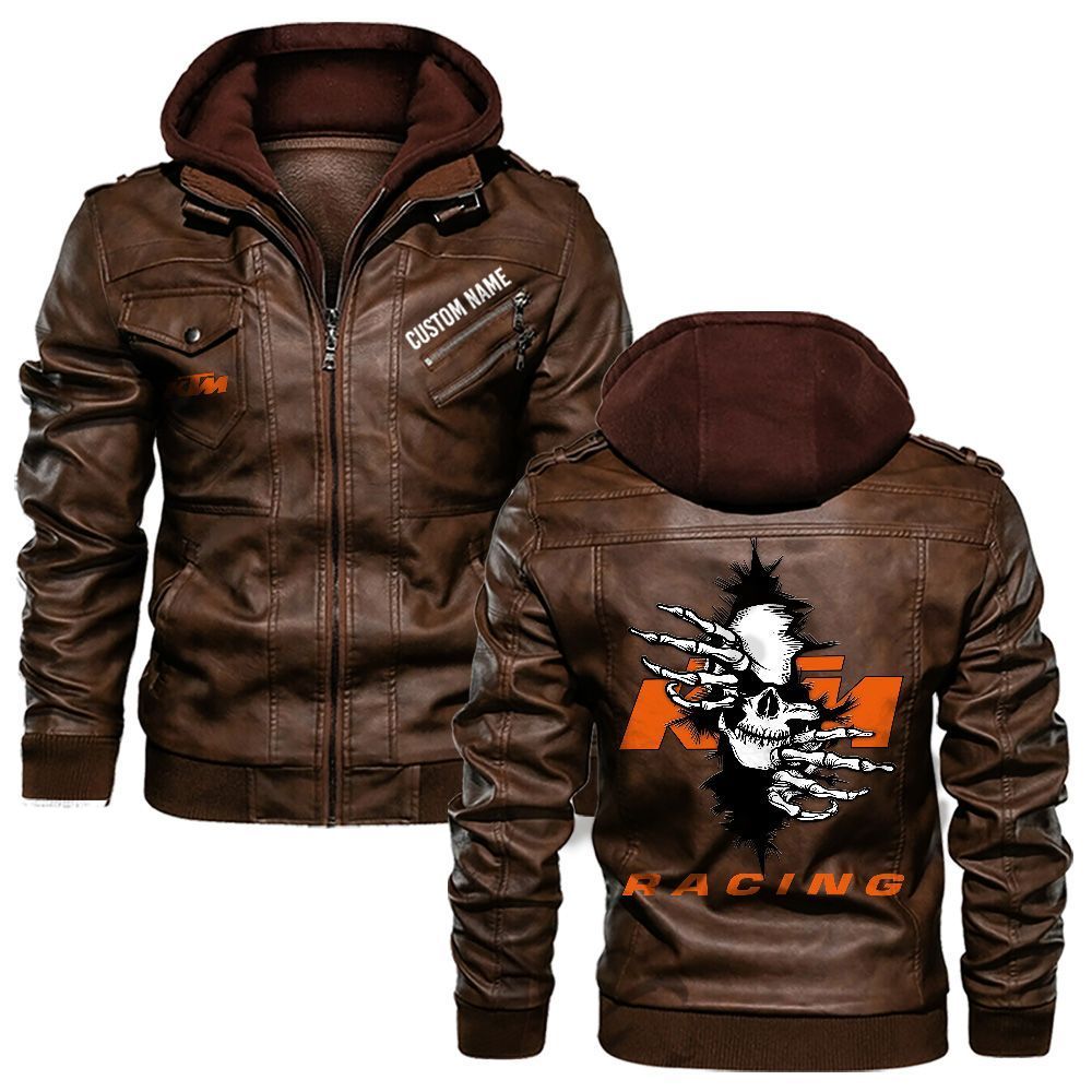 KTM Custom Name Skull Biker Car Driver Personalized Hooded Leather Jacket For Men Women