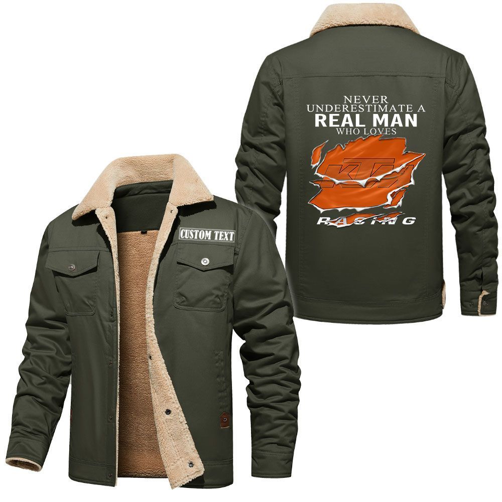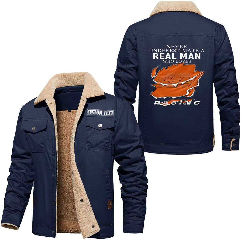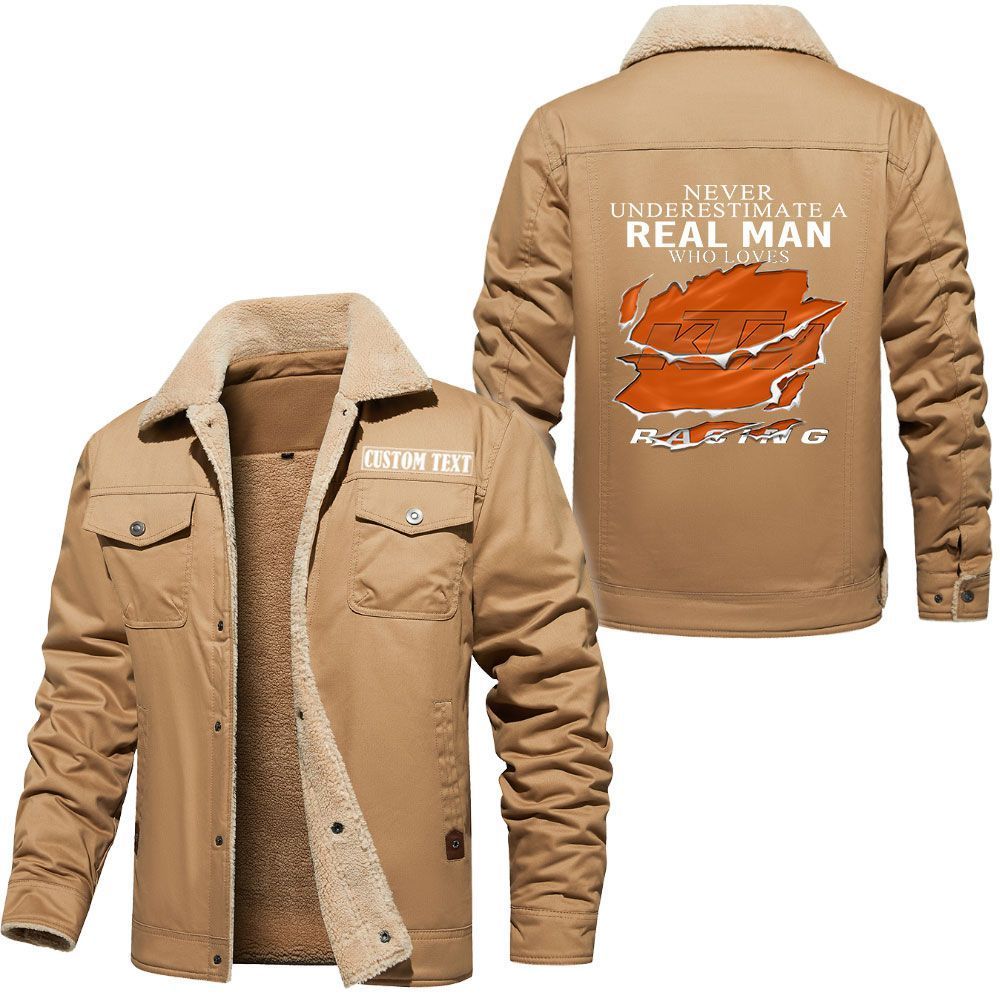 KTM Logo Custom Name Cargo Fleece Lined Cotton Jacket A Real Man Who Loves Personalized Outerwear