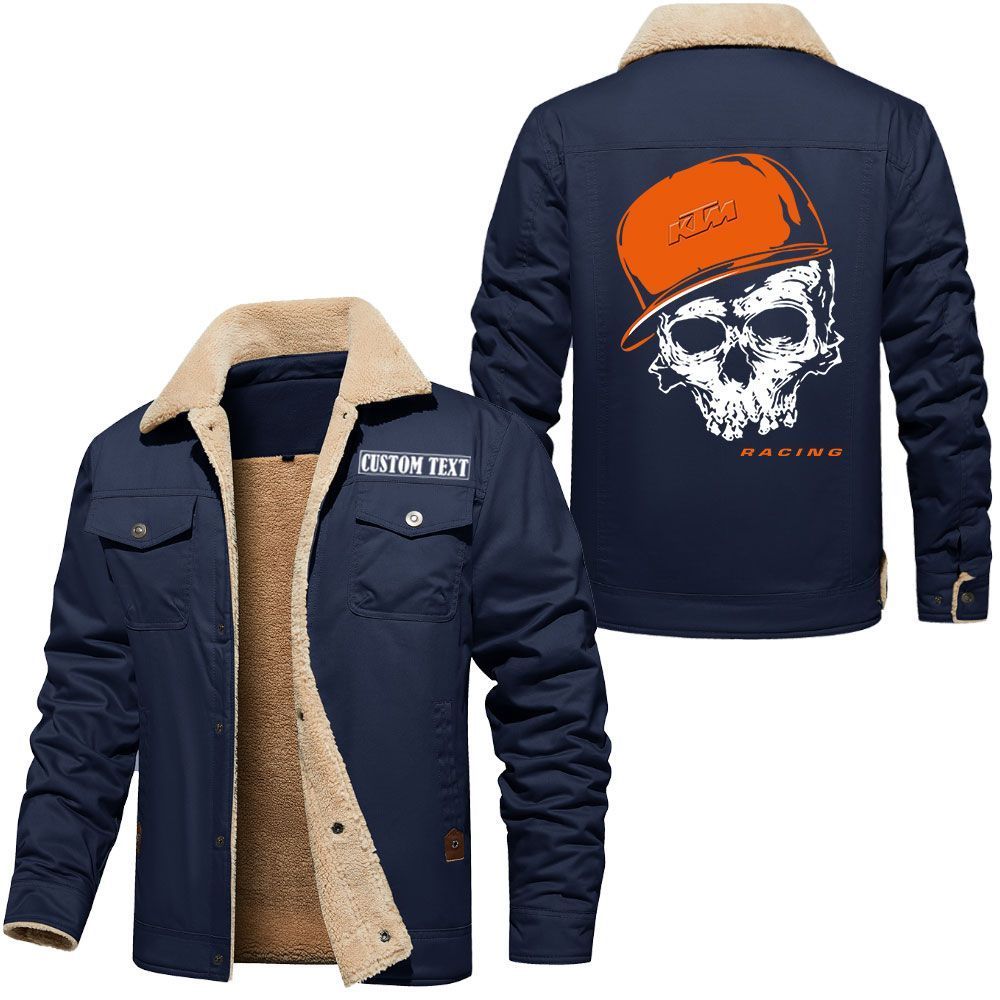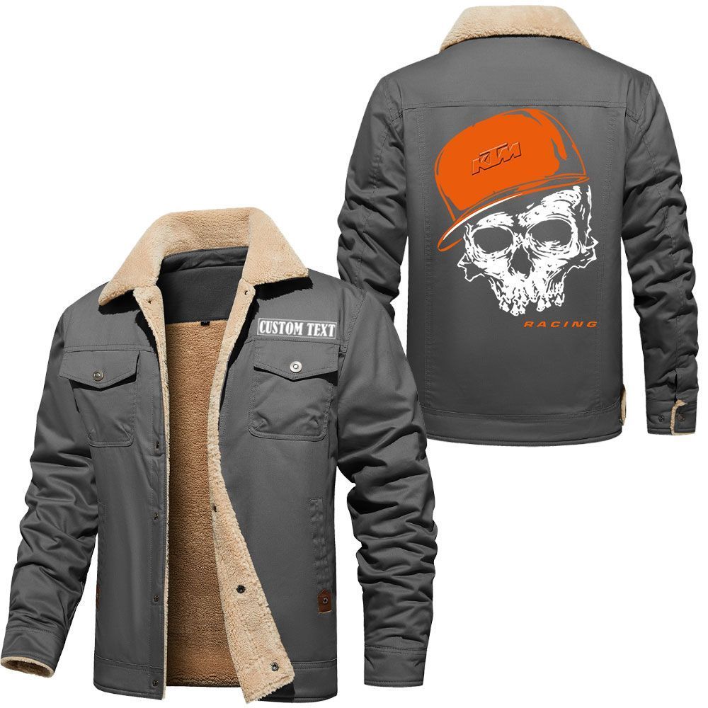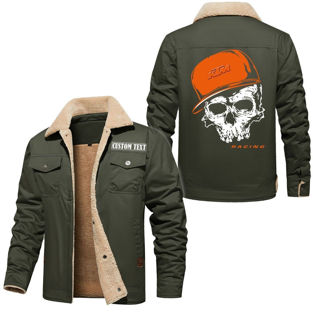KTM Logo Custom Name Cargo Fleece Lined Cotton Jacket Personalized Outerwear with Skull Design