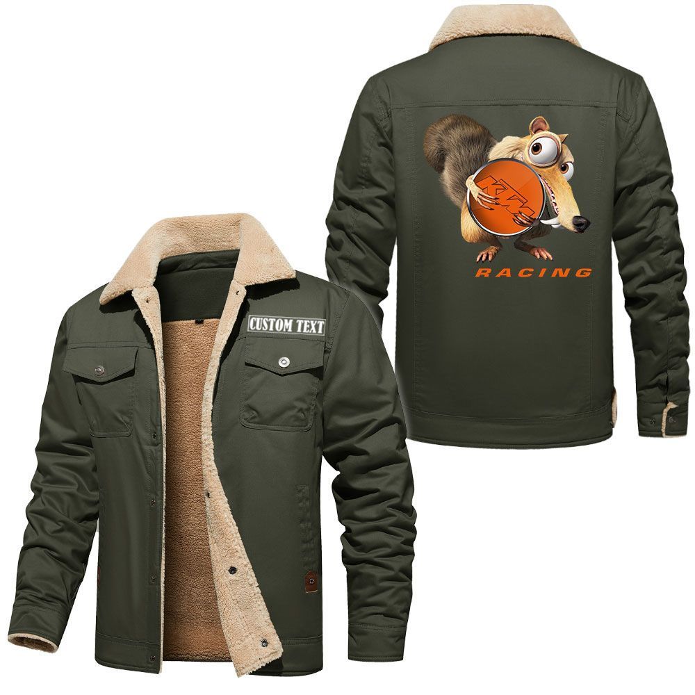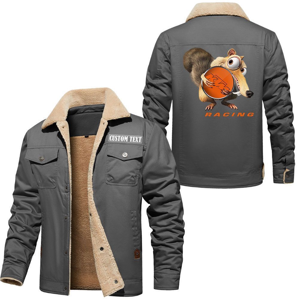 KTM Logo Custom Name Cargo Fleece Lined Cotton Jacket Scrat Ice Age Design Personalized Outerwear