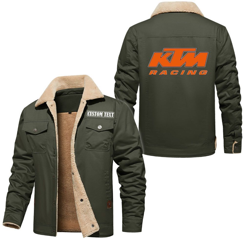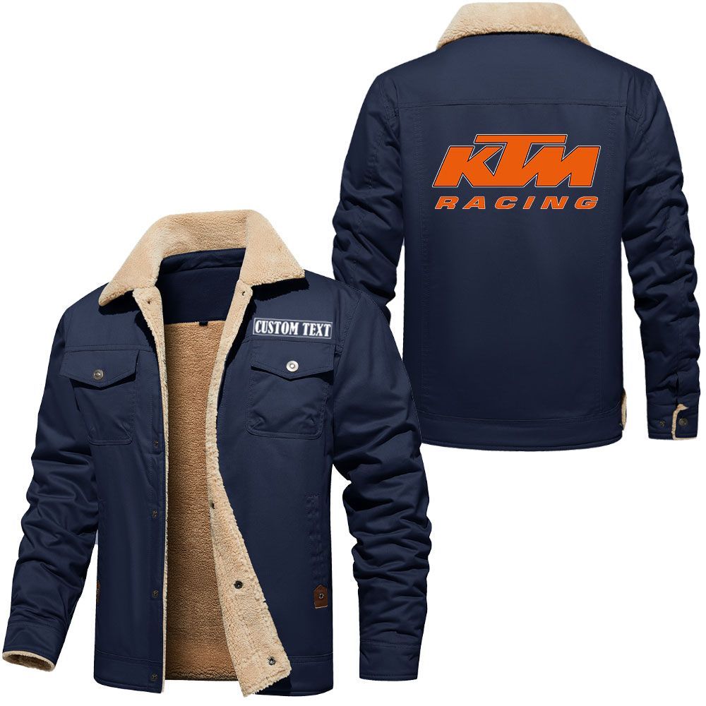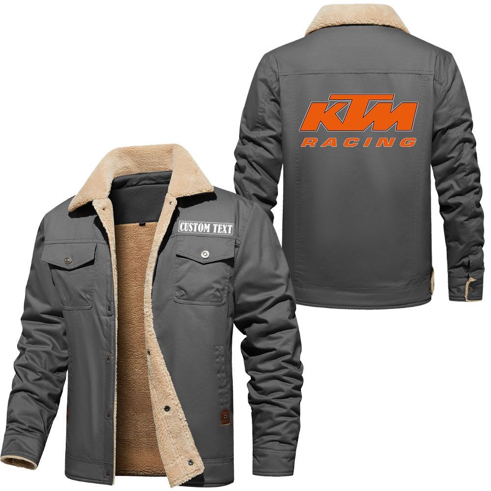 KTM Logo Custom Name Cargo Fleece Lined Cotton Jacket Stylish Warm Personalized Outerwear