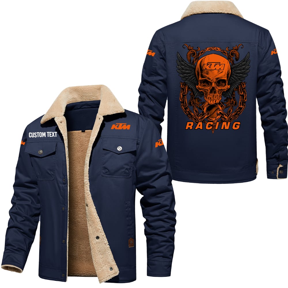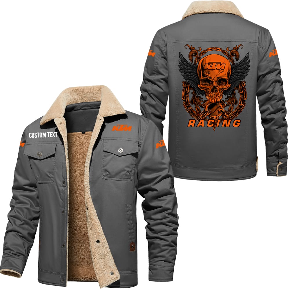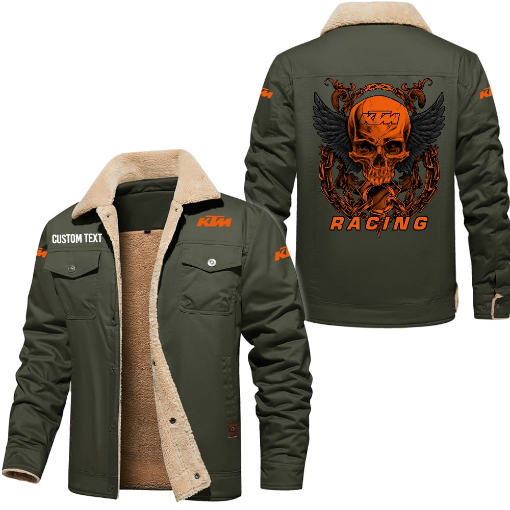 KTM Racing Custom Name Skull Design Cargo Fleece Lined Cotton Jacket