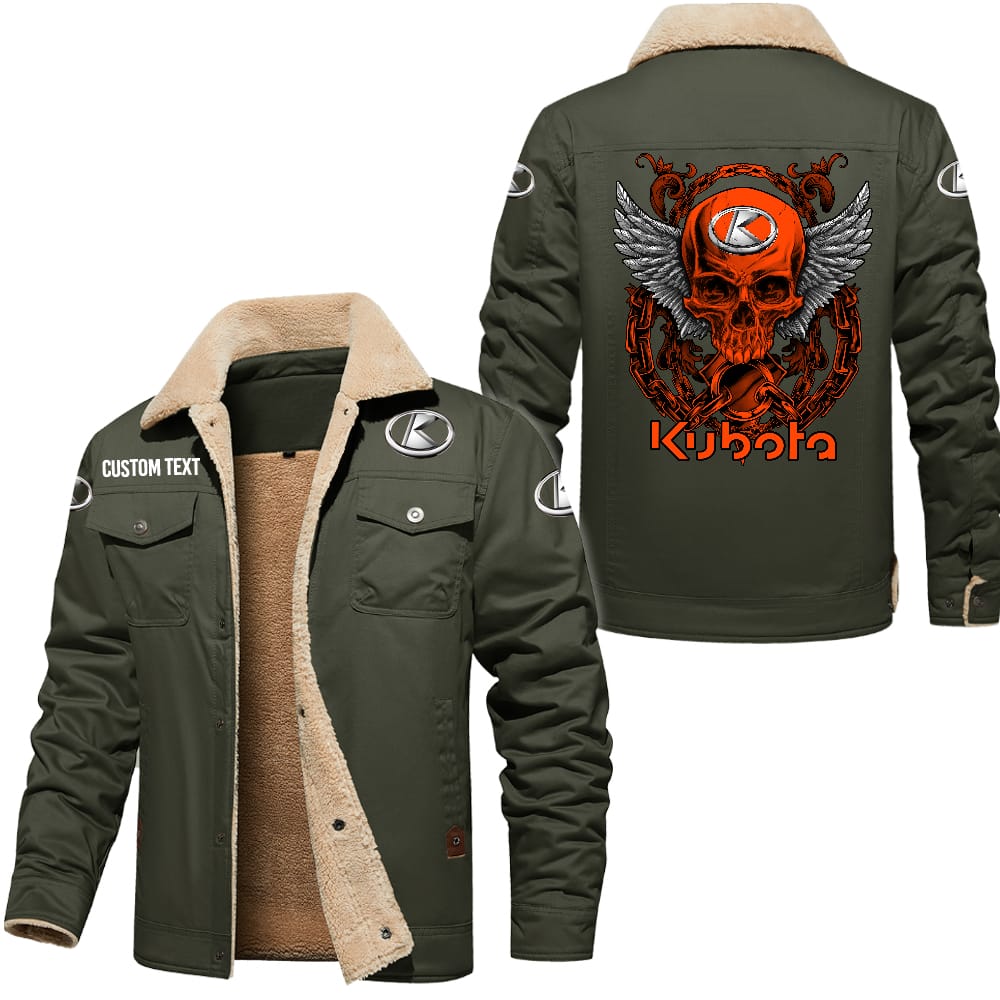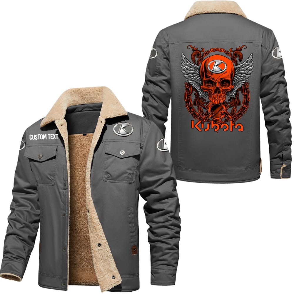 Kubota Custom Name Skull Design Cargo Fleece Lined Cotton Jacket