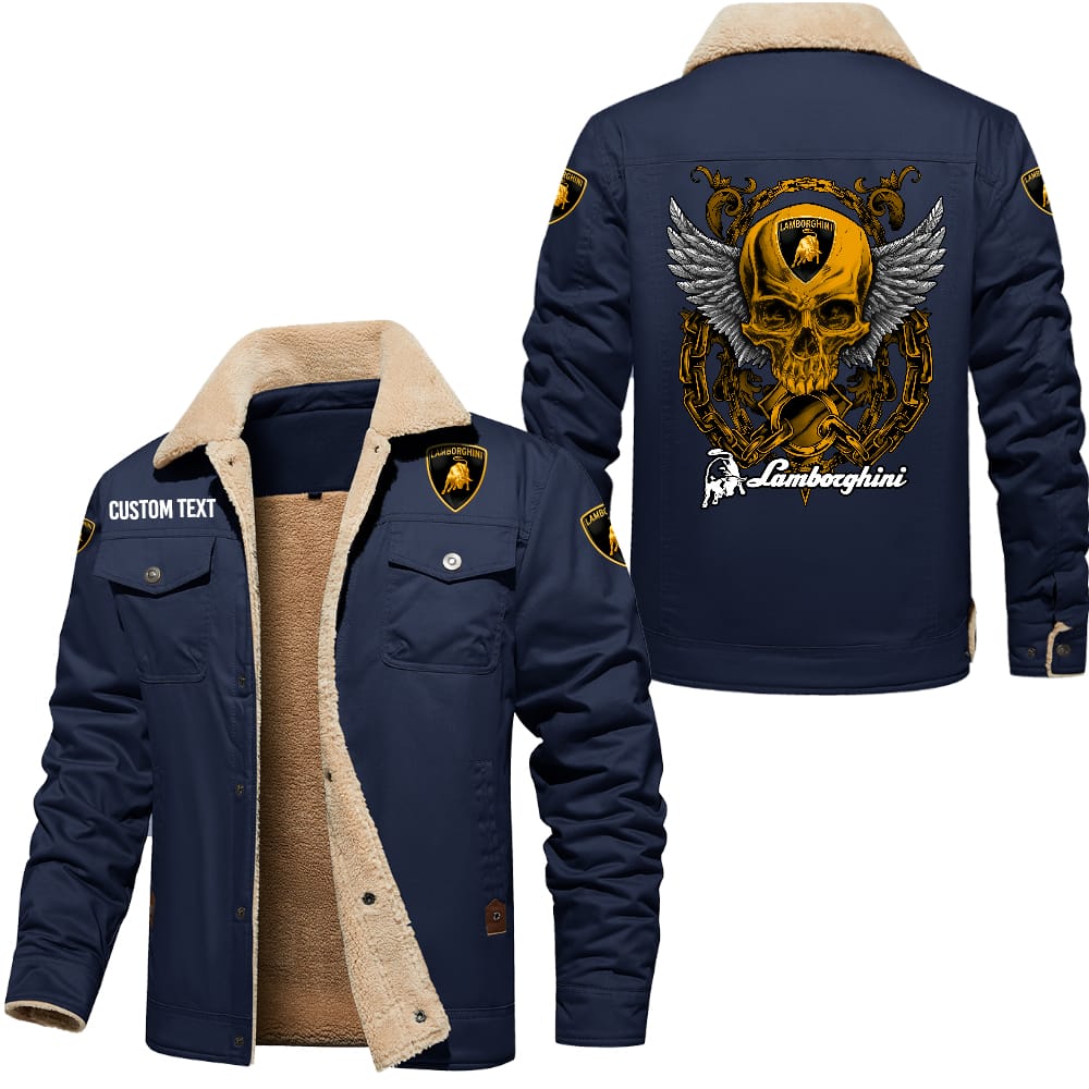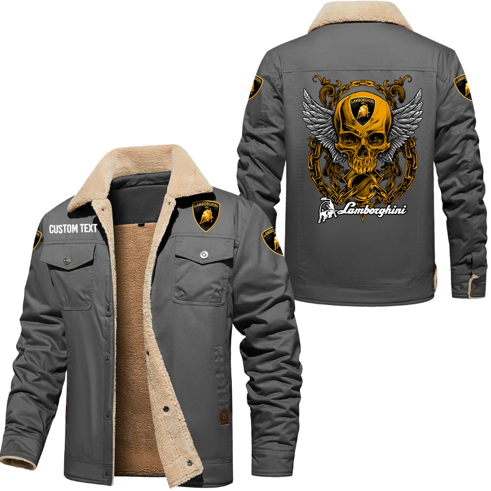 Lamborghini Custom Name Skull Design Cargo Fleece Lined Cotton Jacket