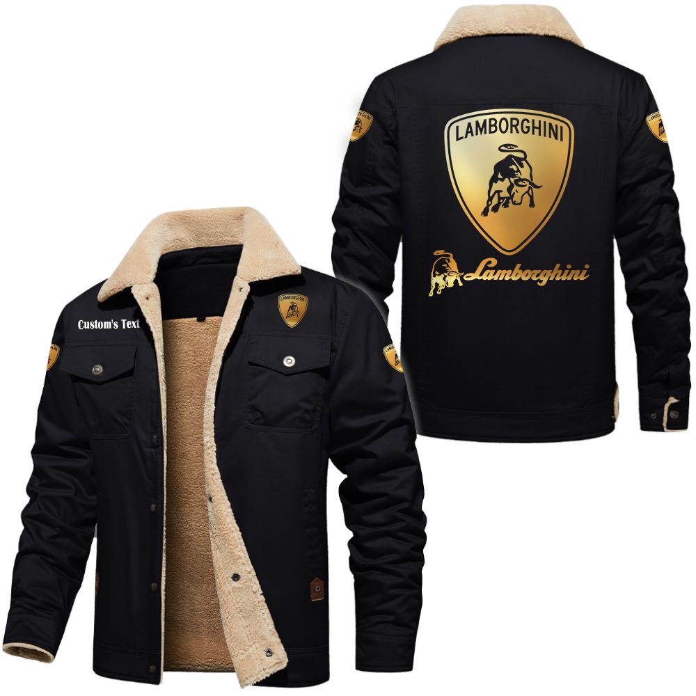 Lamborghini Golden Logo Custom Cargo Fleece Lined Cotton Jacket Black