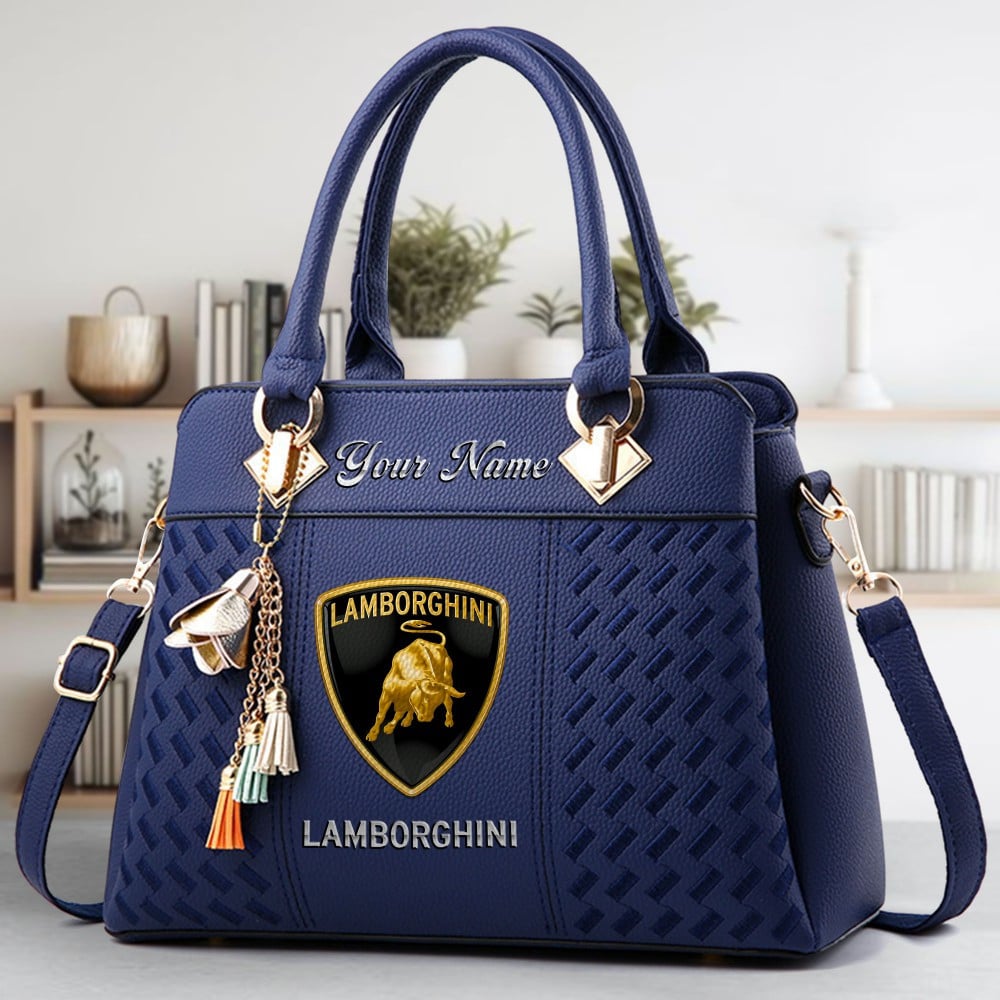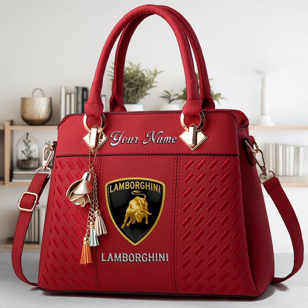 Lamborghini Logo Crossbody Zip Hand Bag With Tassel Custom Name For Women