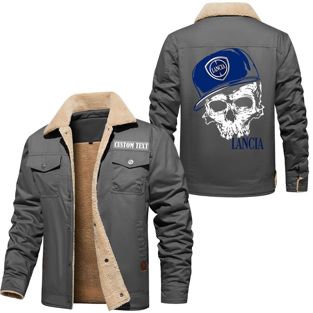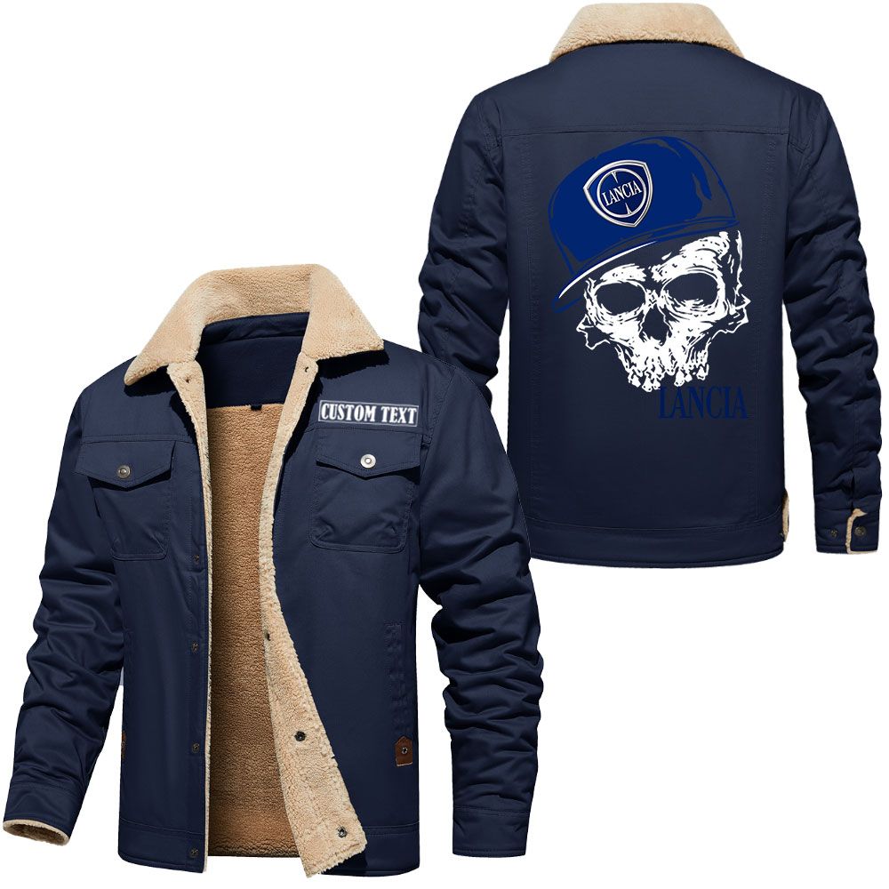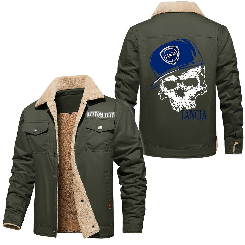 Lancia Logo Custom Name Cargo Fleece Lined Cotton Jacket Personalized Outerwear with Skull Design