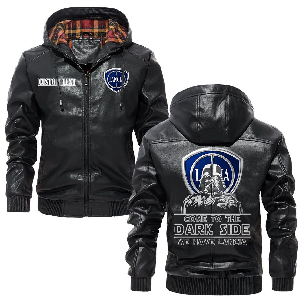 Lancia Logo Custom Name Leather Hoodie Jacket Warm Outerwear with Star Wars Theme