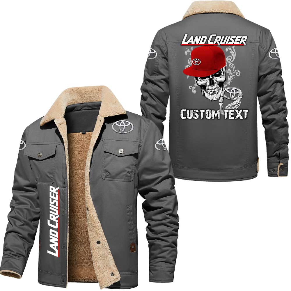 Land Cruiser Skull Custom Name Cargo Fleece Lined Cotton Jacket