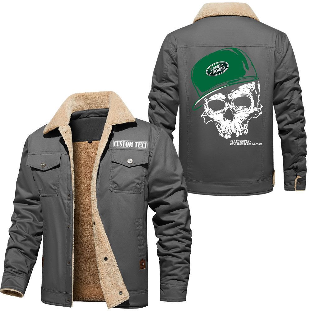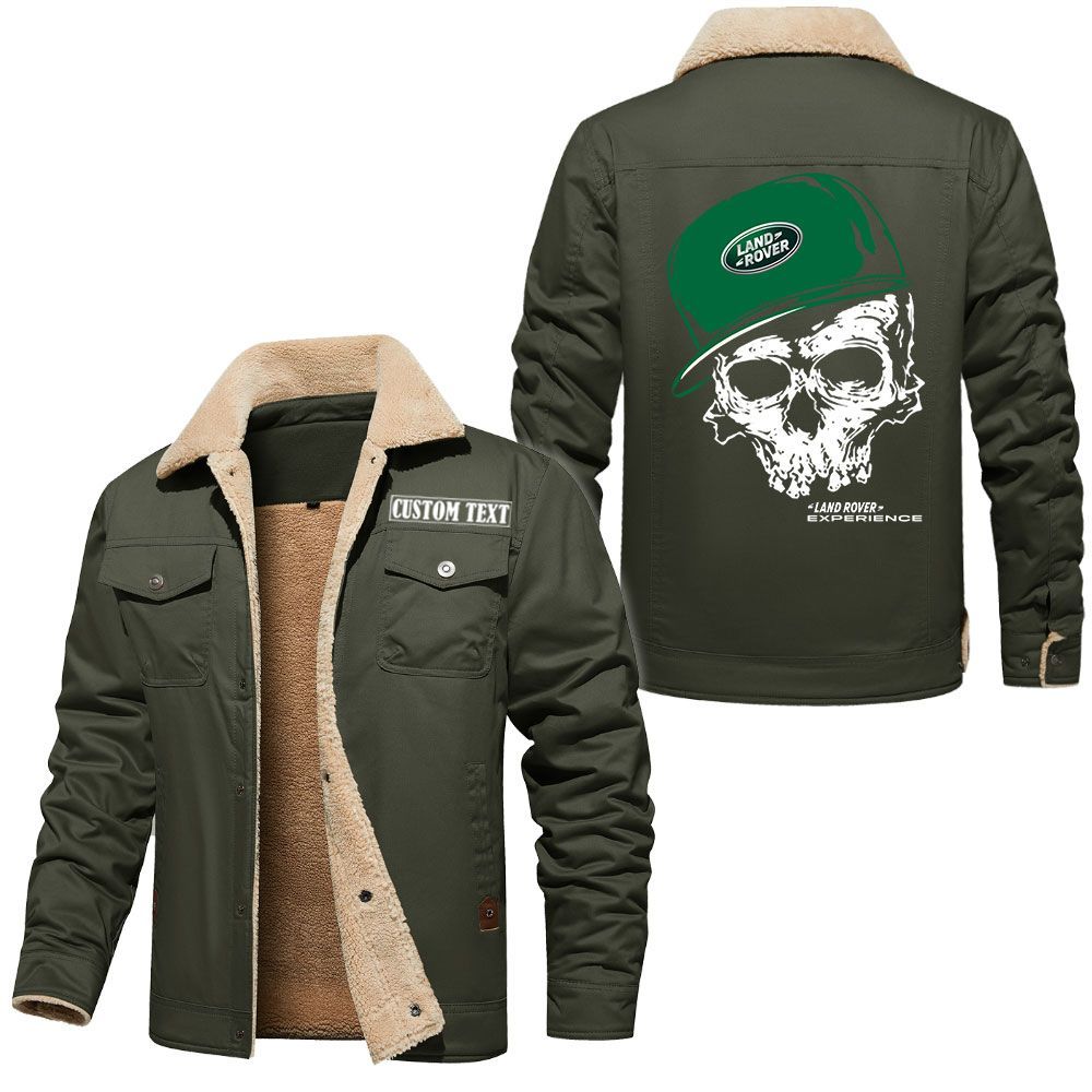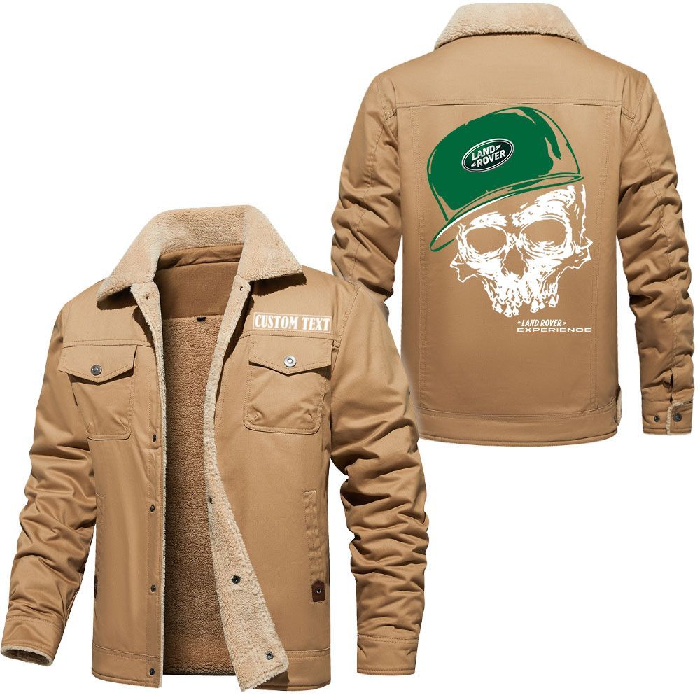 Land Rover Logo Custom Name Cargo Fleece Lined Cotton Jacket Personalized Outerwear with Skull Design