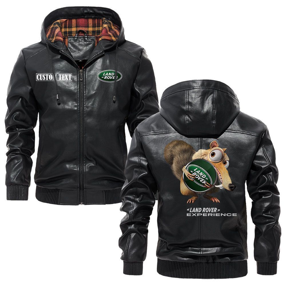Land Rover Logo Custom Name Leather Hoodie Jacket Warm Outerwear with Ice Age Theme