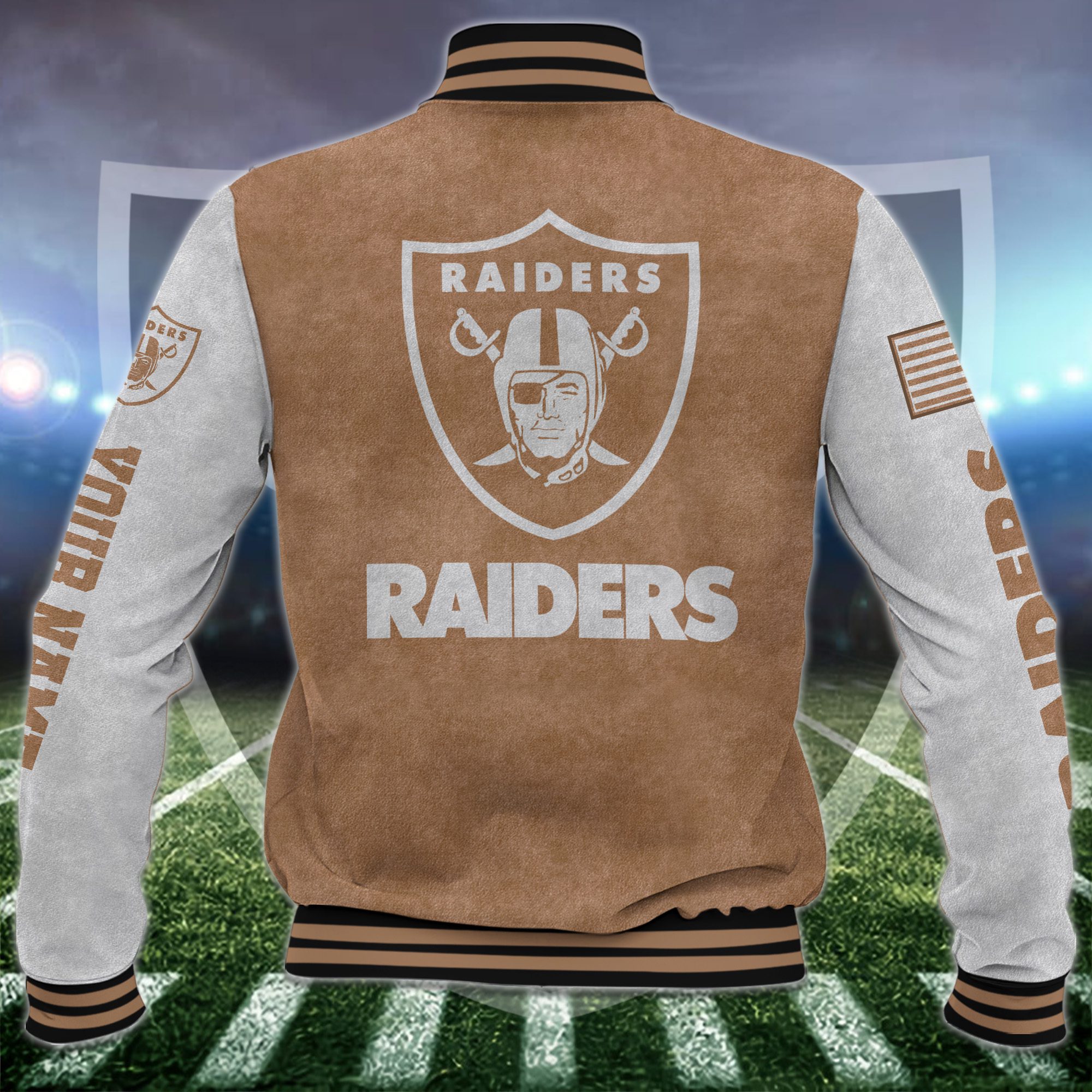 Las Vegas Raiders Brown Baseball Jacket Custom Name