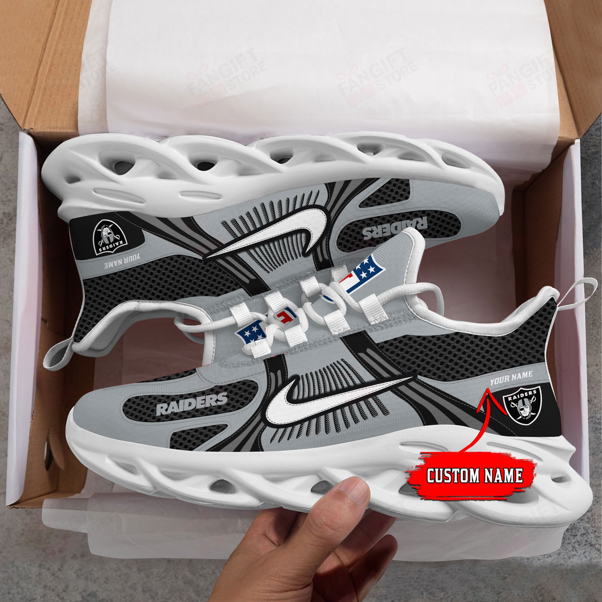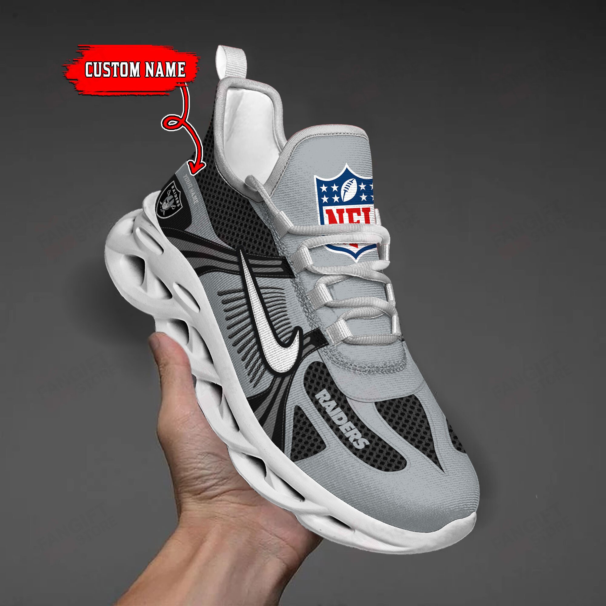 Las Vegas Raiders Max Soul Shoes Sneakers Printed White And Black Sole For Men And Women