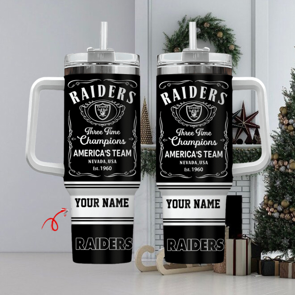 Las Vegas Raiders Nfl Custom Stanley Quencher 40Oz Stainless Steel Tumbler With Handle