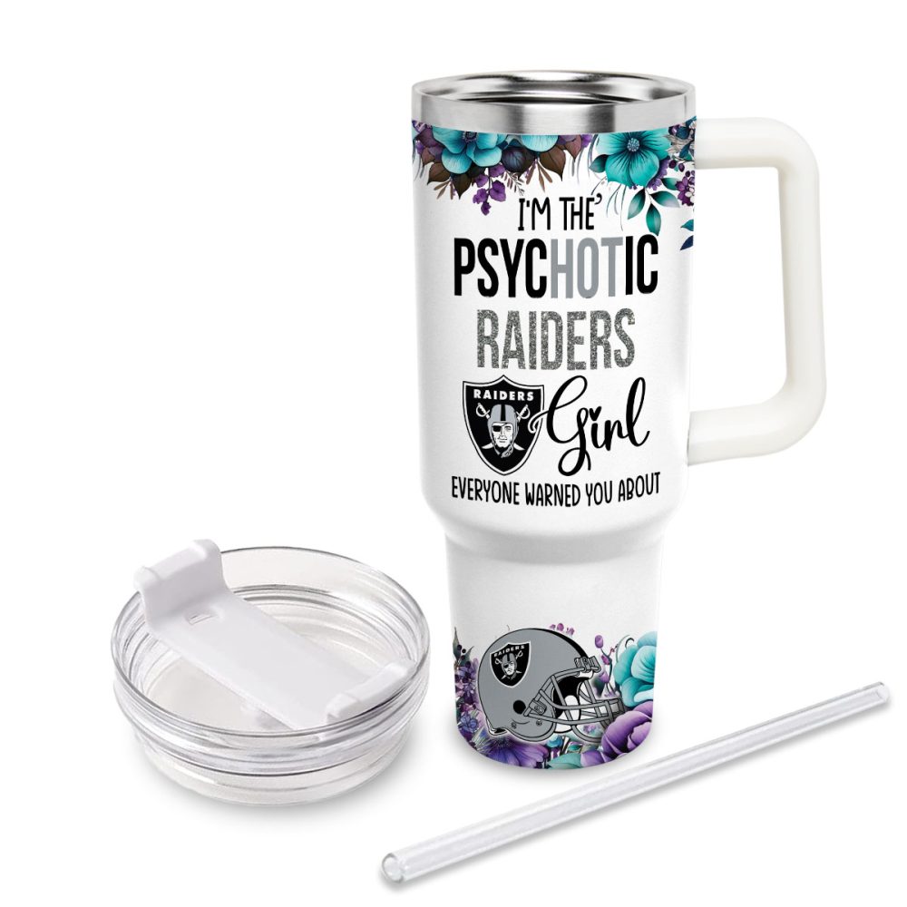 Las Vegas Raiders Nfl Custom Stanley Quencher 40Oz Stainless Steel Tumbler With Handle