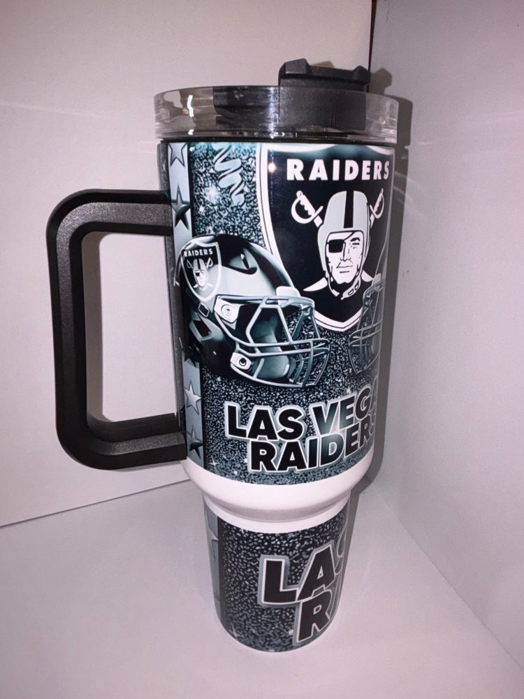 Las Vegas Raiders Nfl Custom Stanley Quencher 40Oz Stainless Steel Tumbler With Handle
