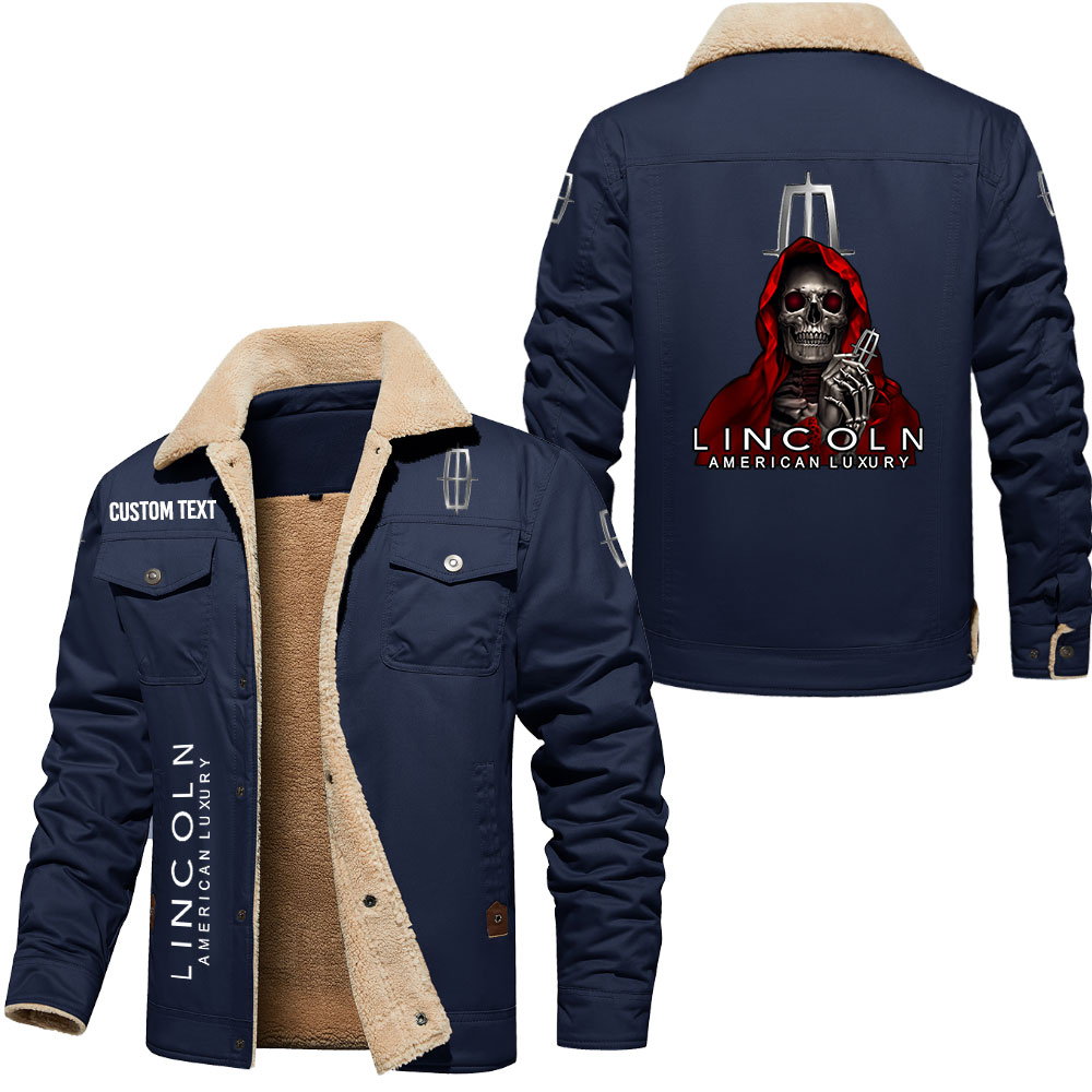 Lincoln American Luxury Skull Art Print Custom Name Cargo Fleece Lined Cotton Jacket