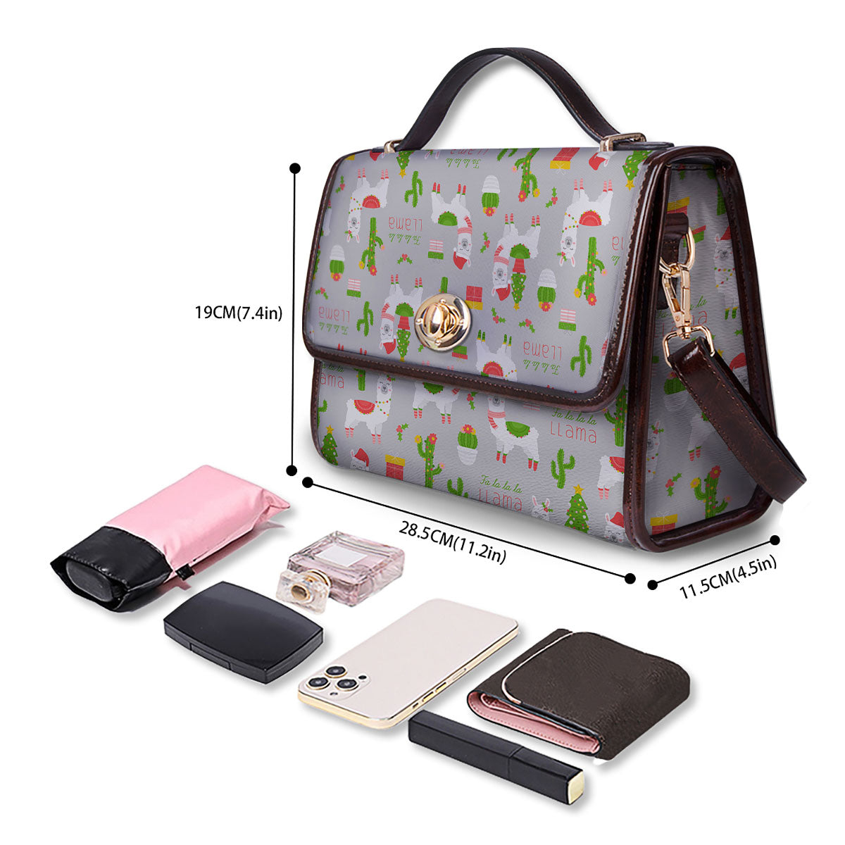 Llama Xmas Santa Claus Print Pattern Women’s Satchel Bag