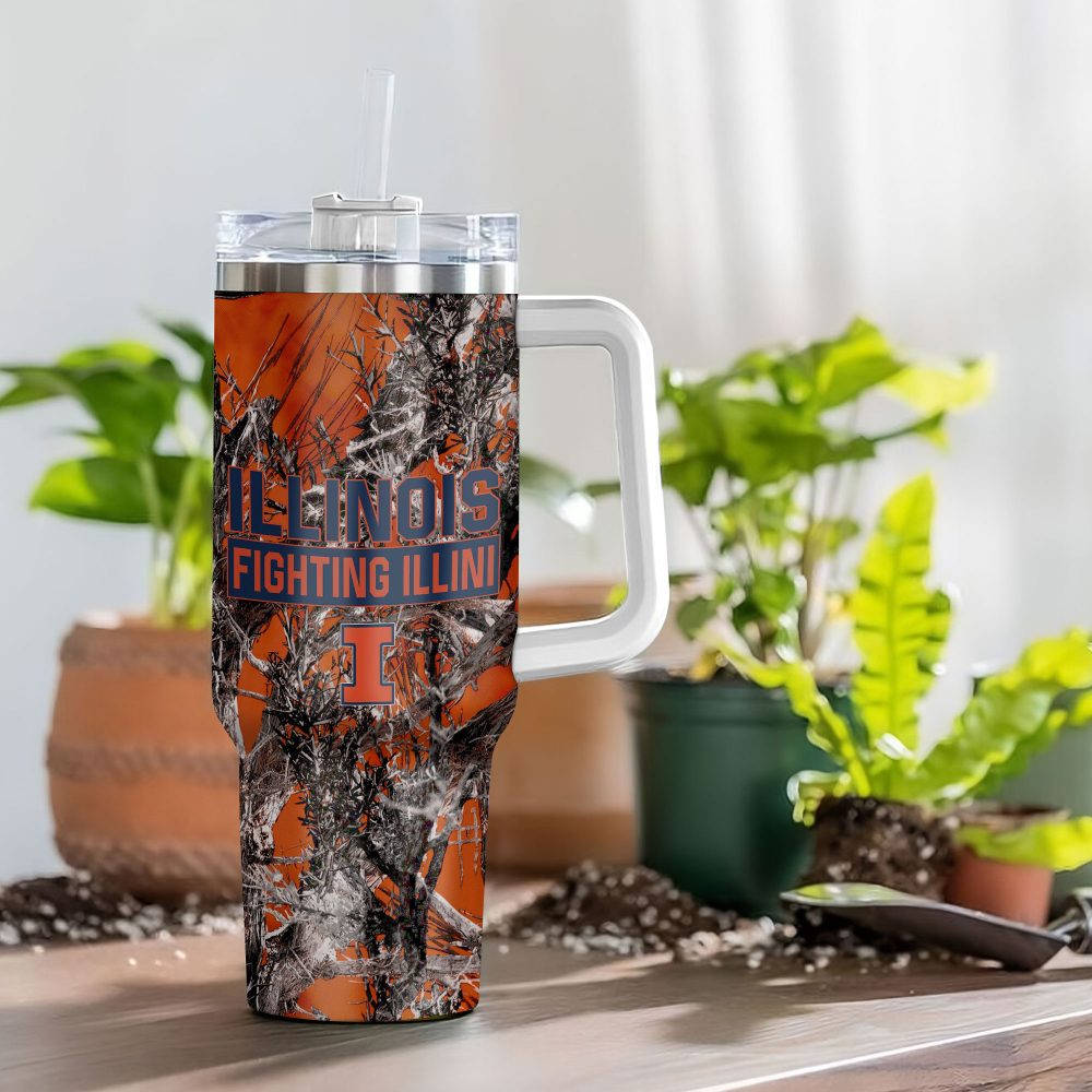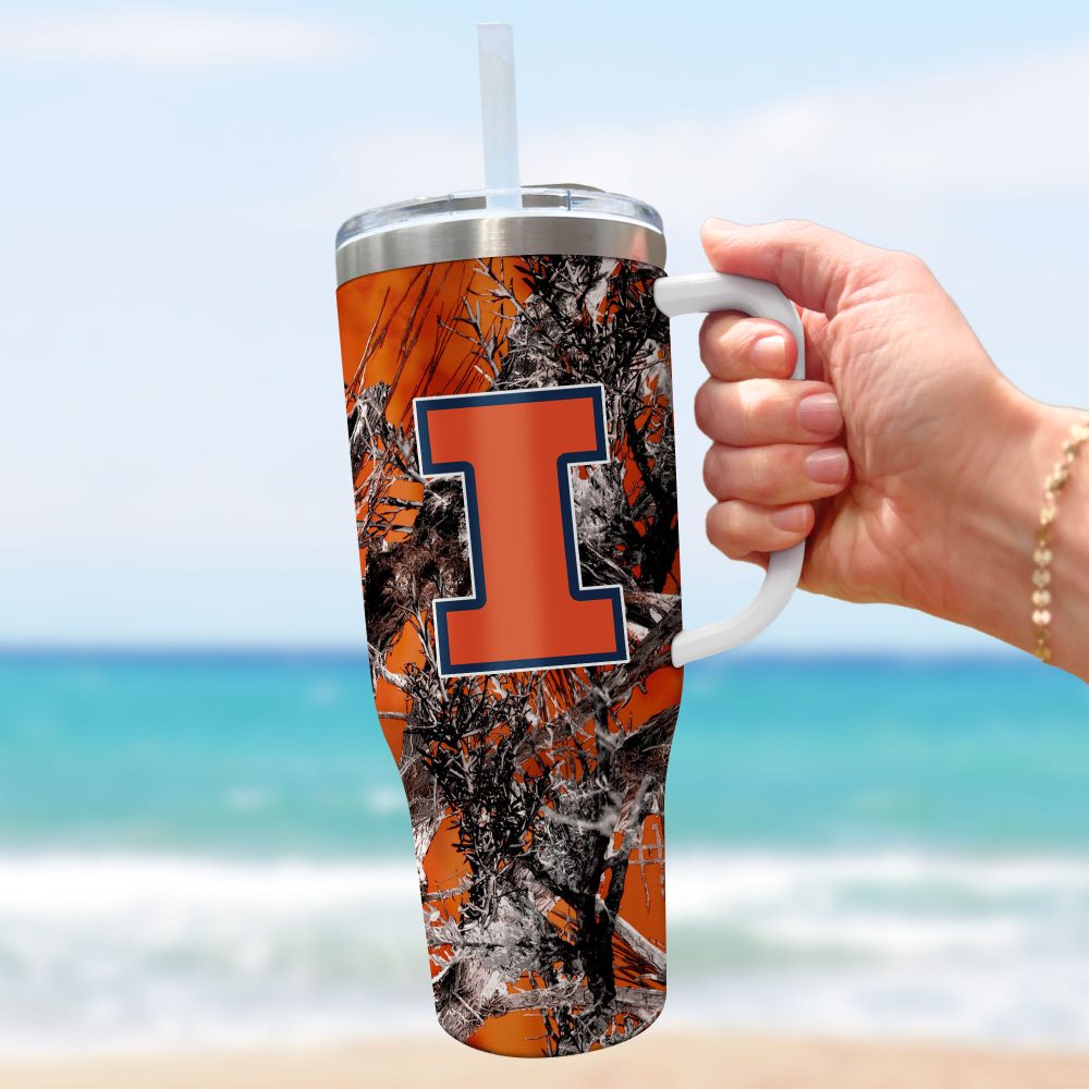 Llinois Fighting Illini Ncaa Hunting Custom Stanley Quencher 40Oz Stainless Steel Tumbler With Handle