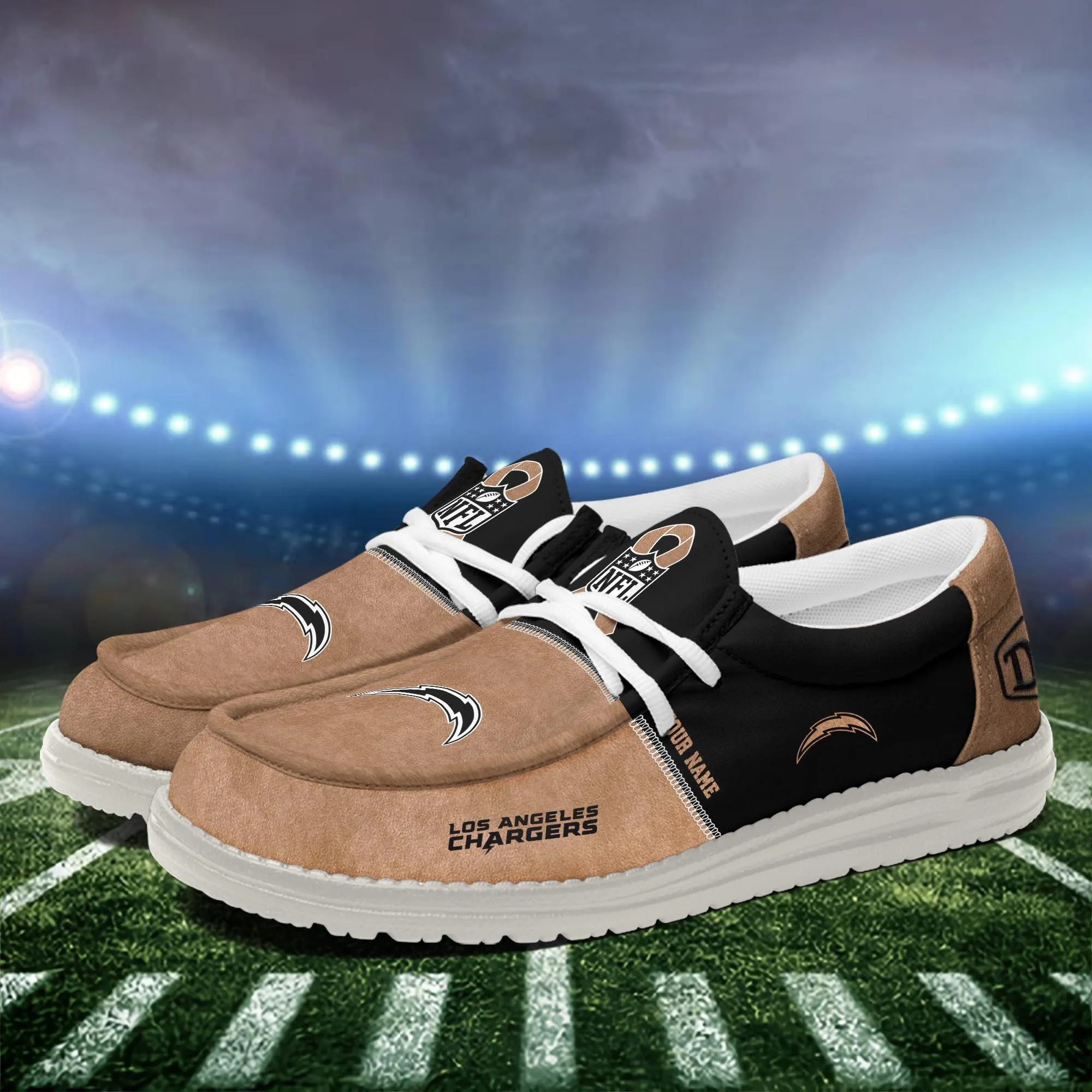 Los Angeles Chargers Custom Name Dude Shoes Brown