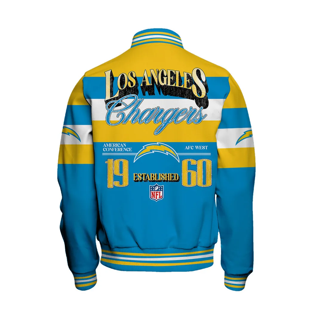 Los Angeles Chargers Football Bolt Crew NFL Retro Baseball Jacket Casual Sport Fan Outerwear NFL