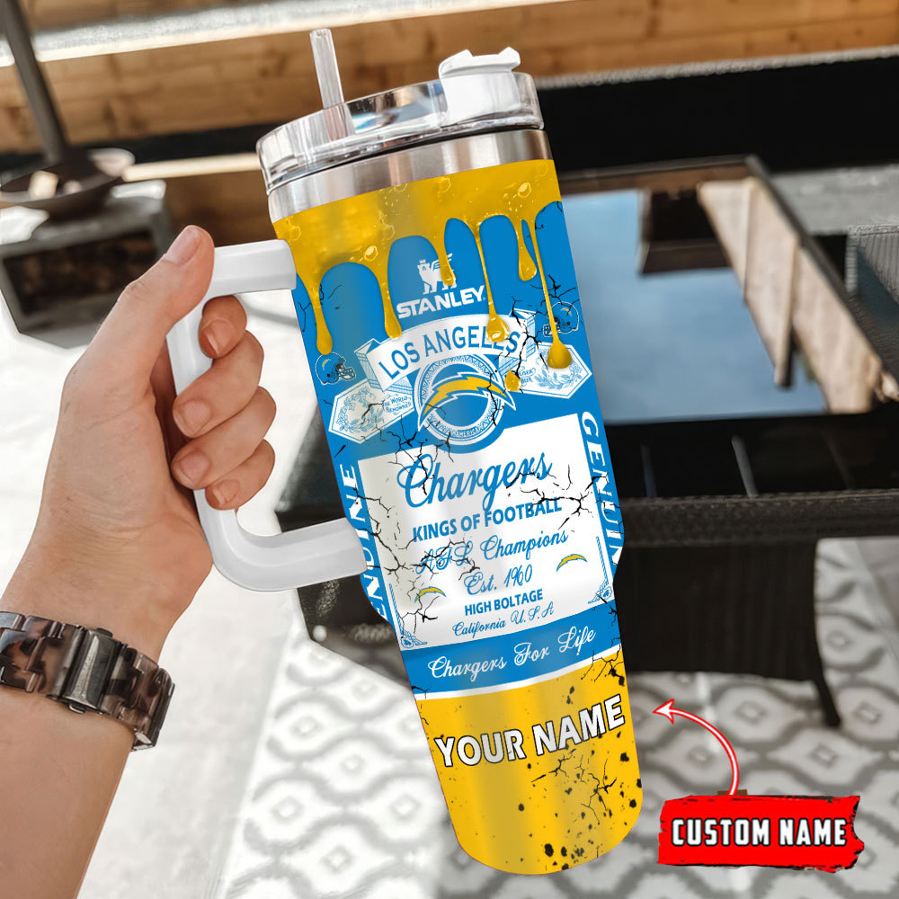 Los Angeles Chargers Nfl Kings Of Football Custom Stanley Quencher 40Oz Stainless Steel Tumbler With Handle