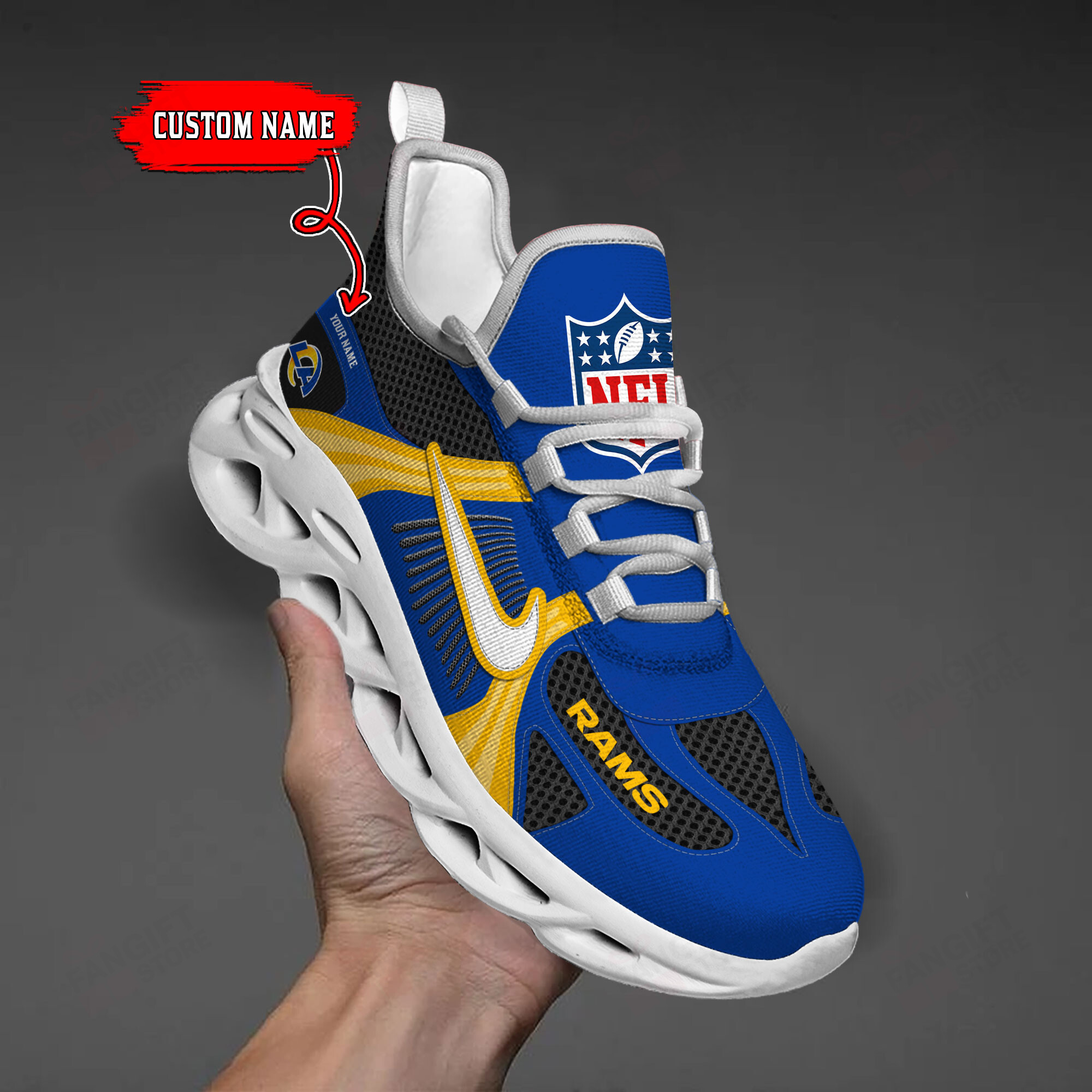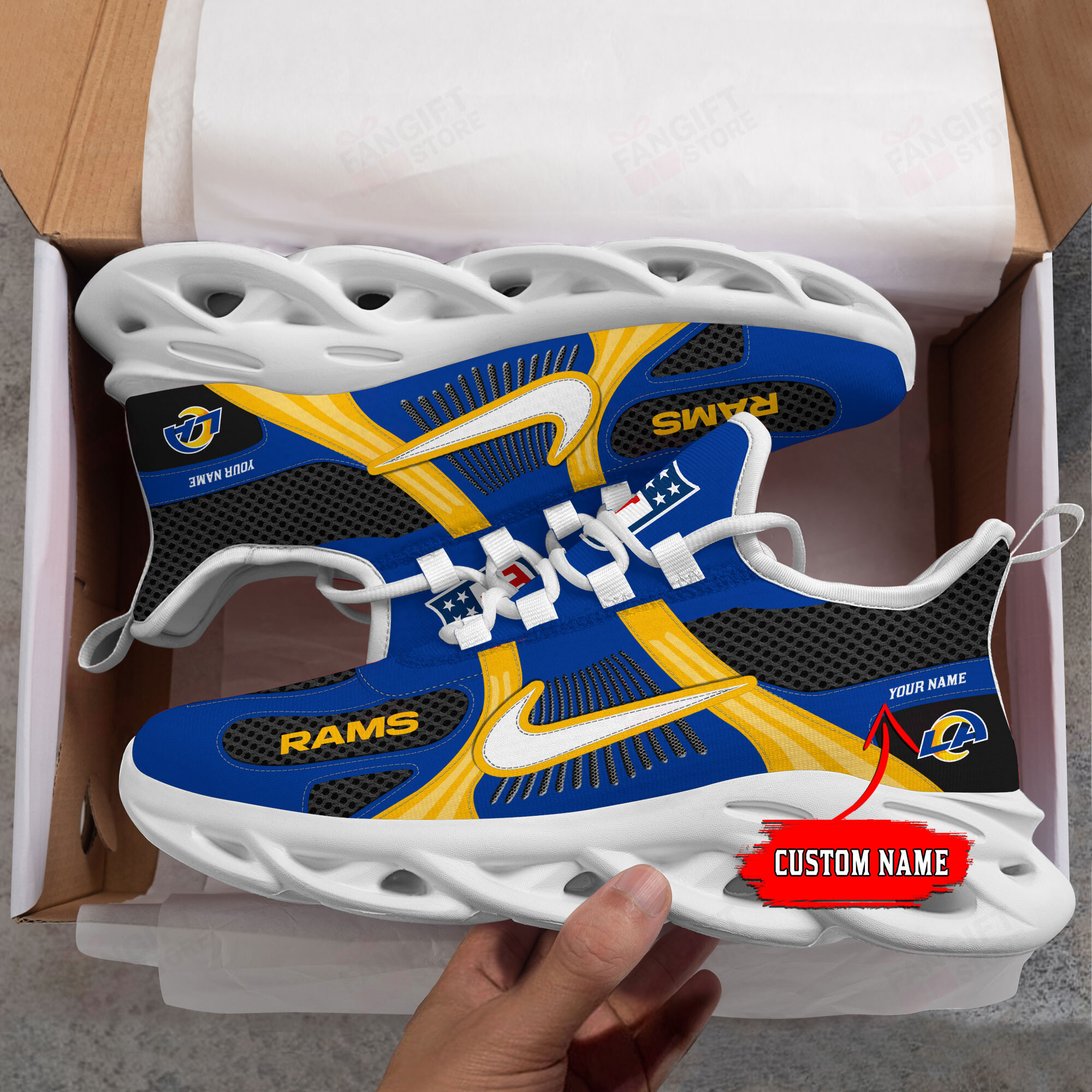 Los Angeles Rams Max Soul Shoes Sneakers Printed White And Black Sole For Men And Women