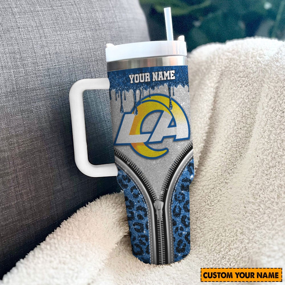 Los Angeles Rams Nfl Glitter Leopard Print Custom Stanley Quencher 40Oz Stainless Steel Tumbler With Handle