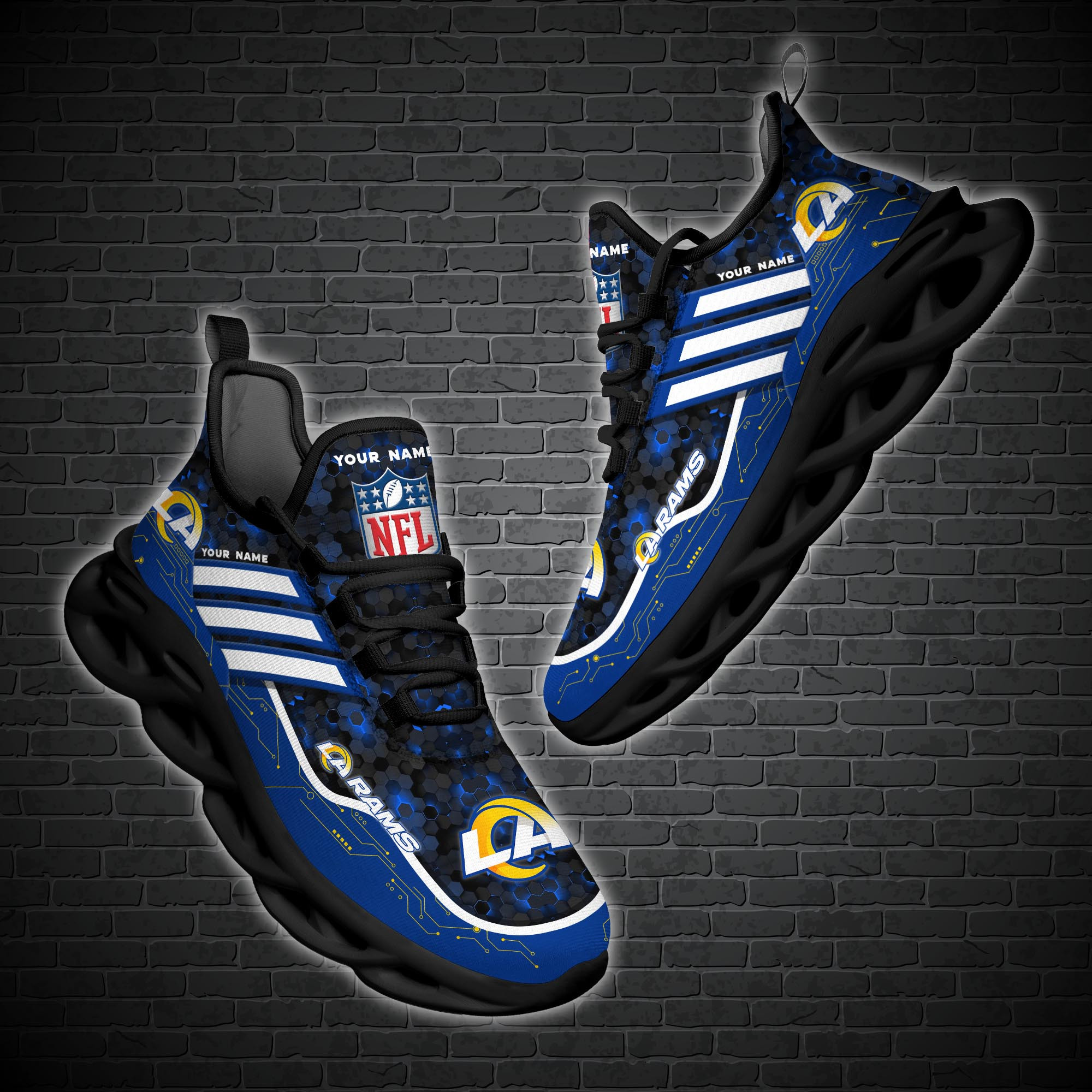 Los Angeles Rams NFL Max Soul Shoes Sneakers Printed White And Black Sole For Men And Women
