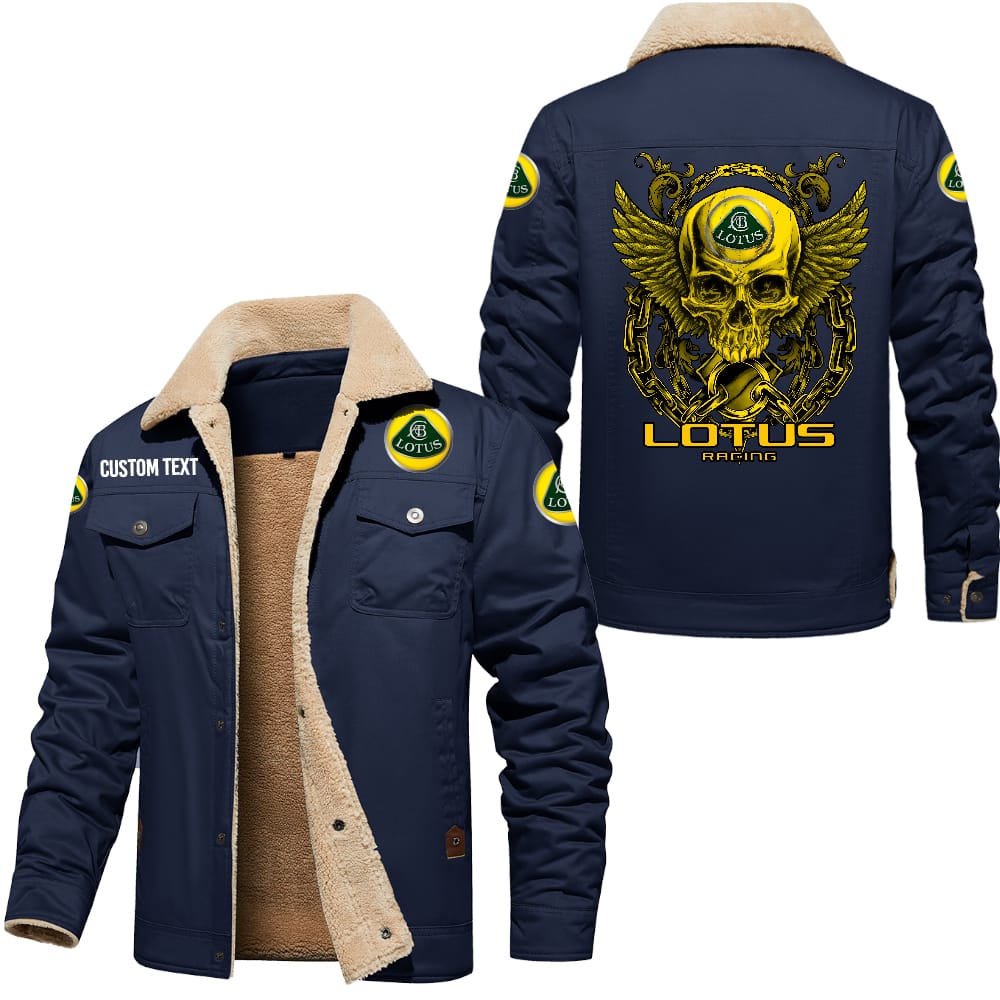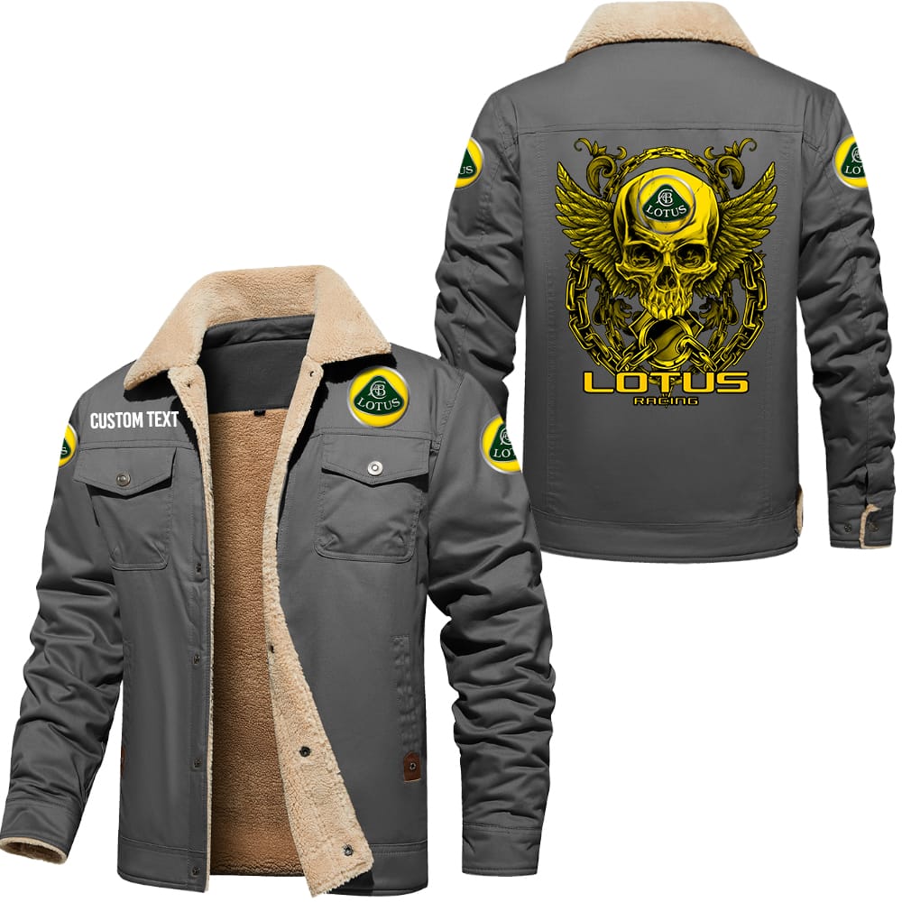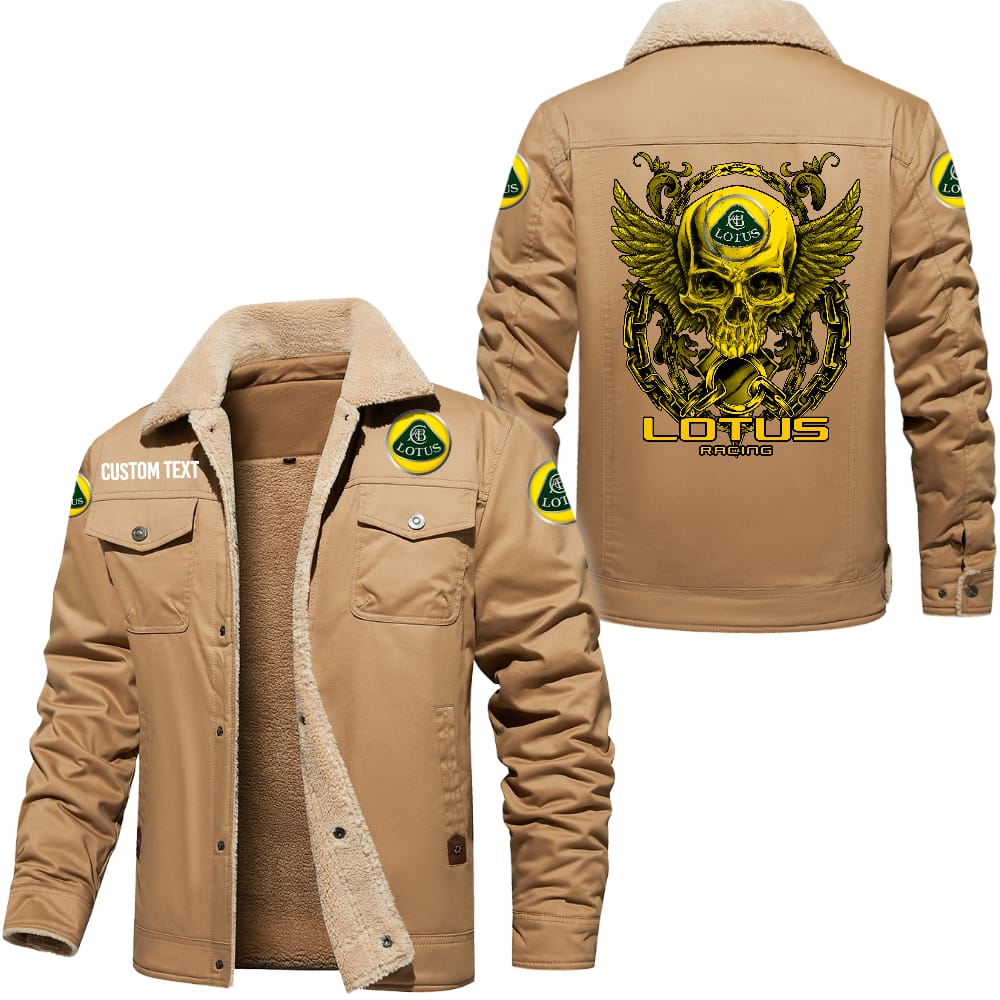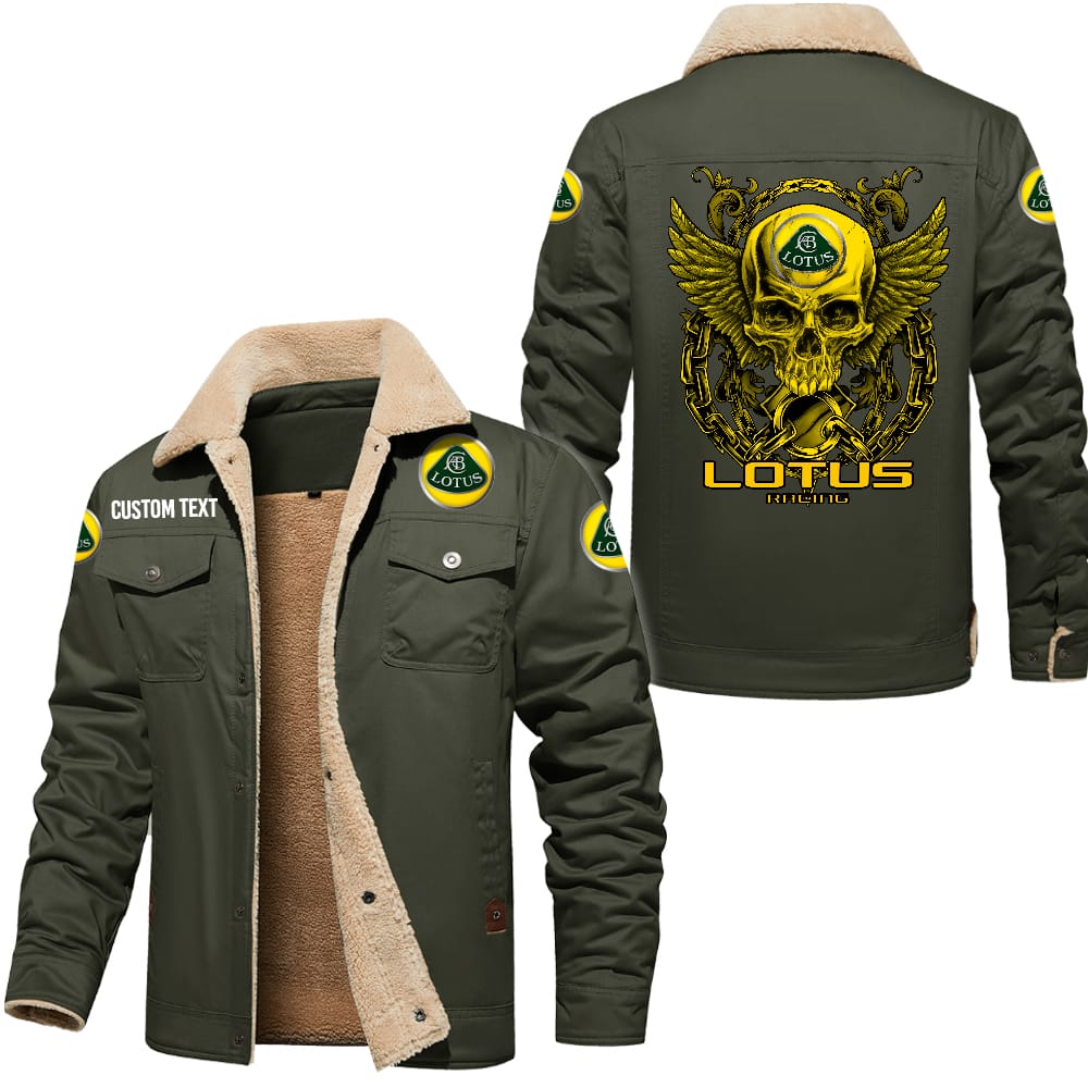Lotus Cars Racing Custom Name Skull Design Cargo Fleece Lined Cotton Jacket