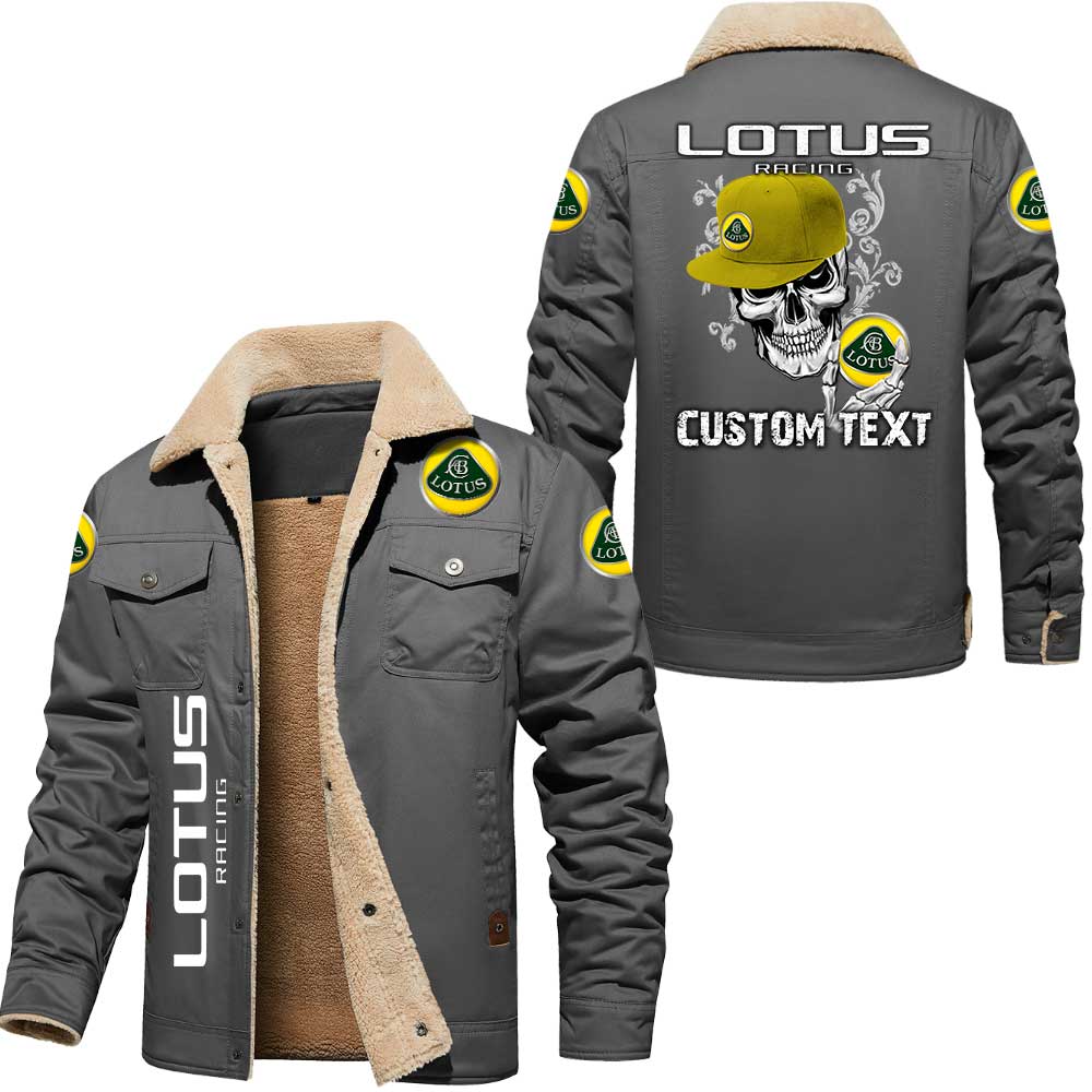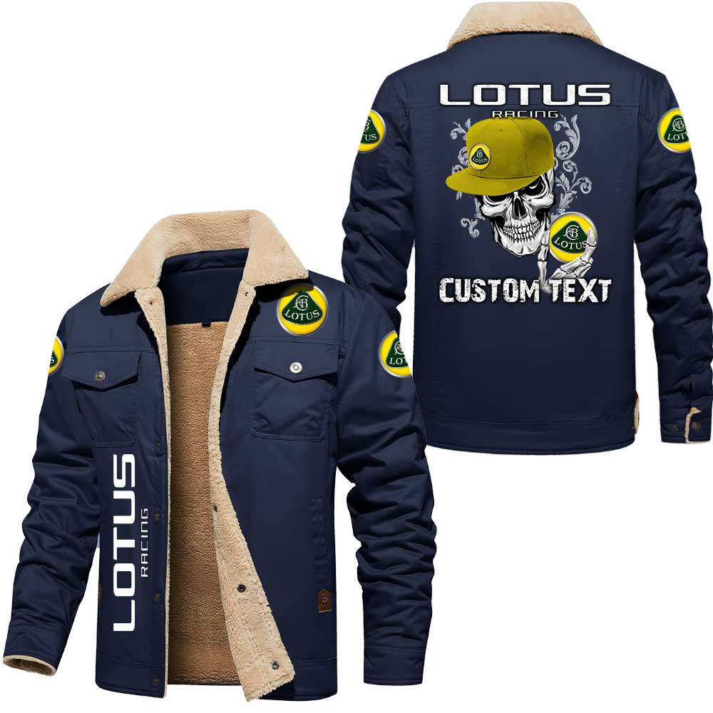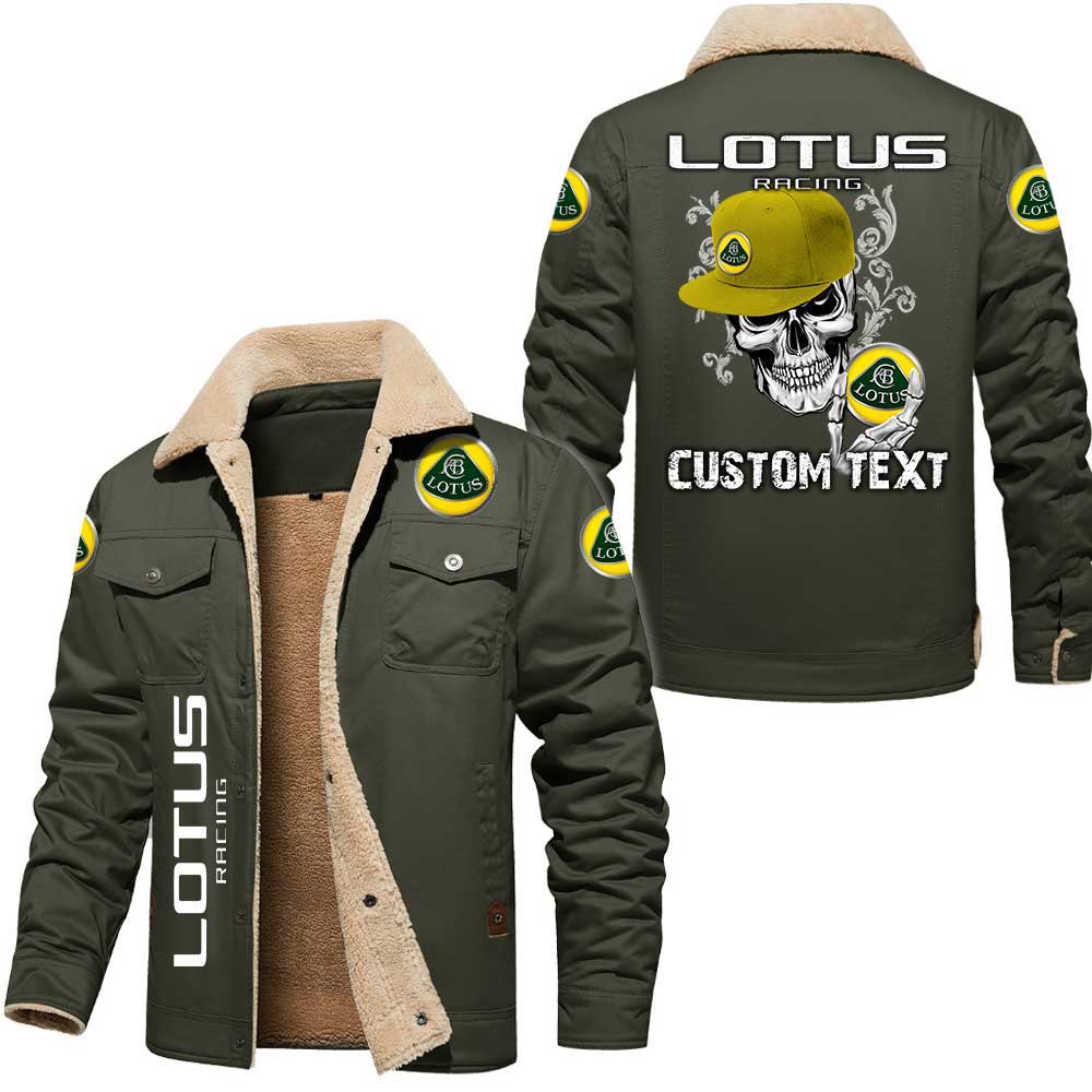 Lotus Cars Racing Skull Custom Name Cargo Fleece Lined Cotton Jacket